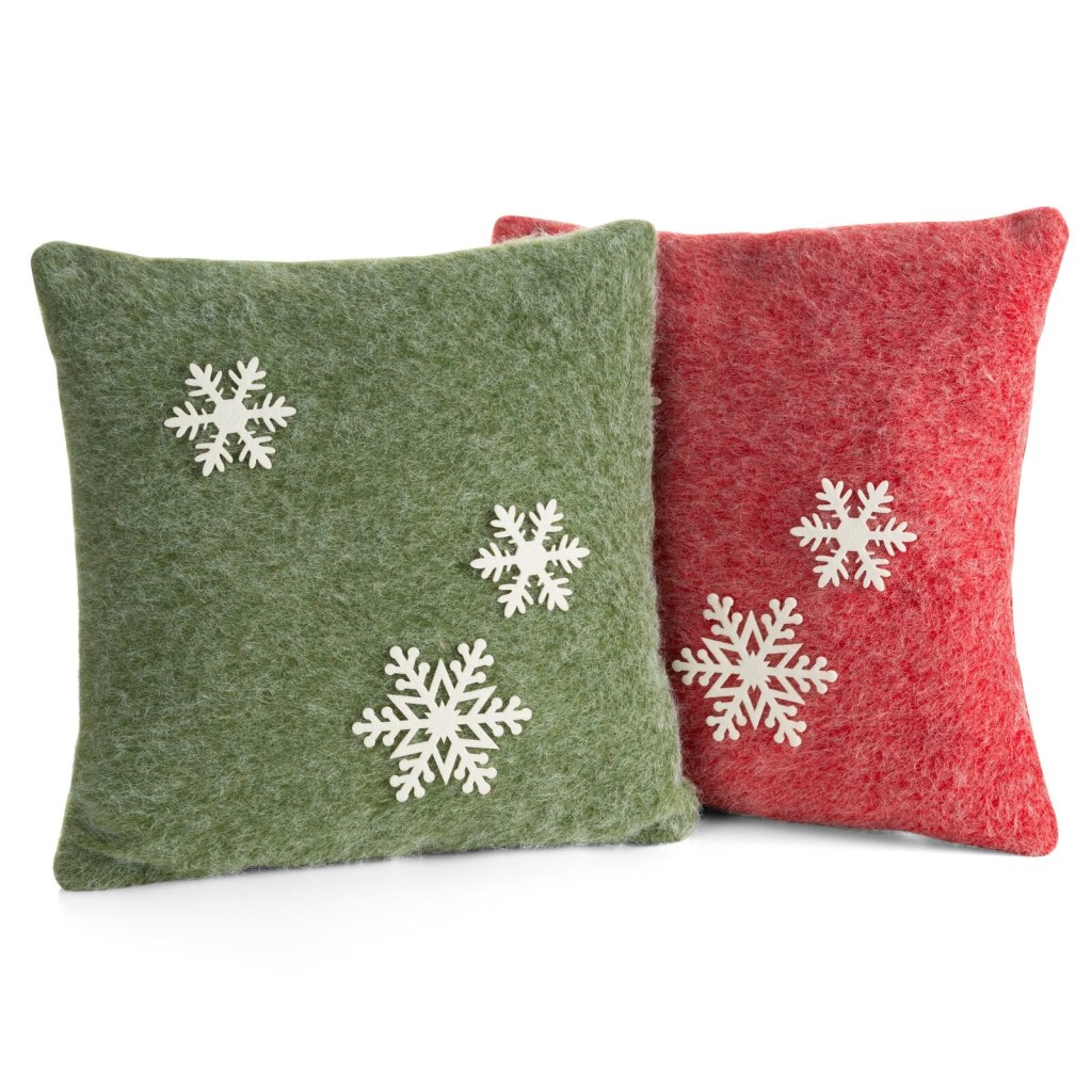 Vánoční dekorační povlak na polštář s aplikací sněhové vločky, šířka: 40 cm, délka: 40 cm, barva: zelená a bílá, složení: 100% polyester.Doplňkové parametry