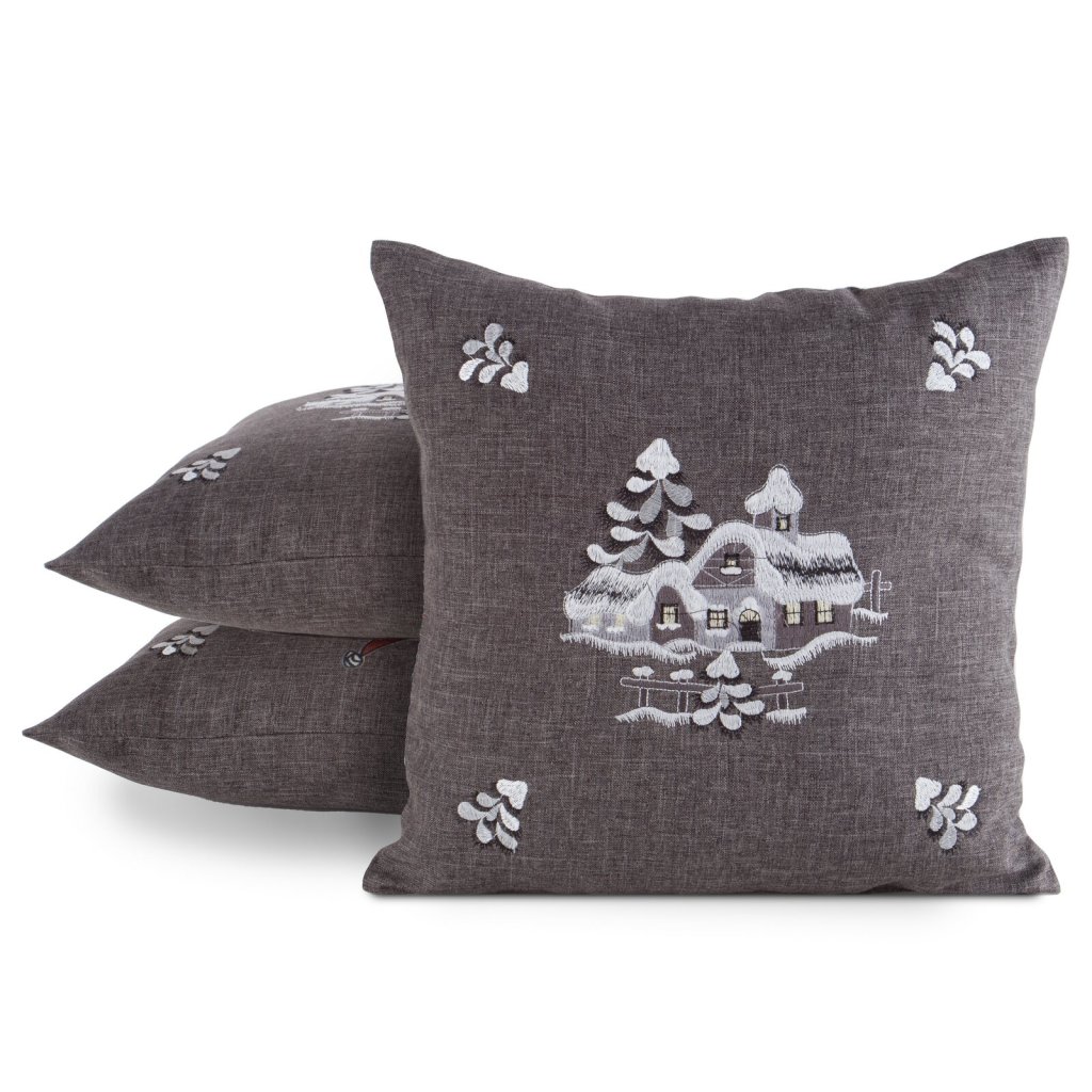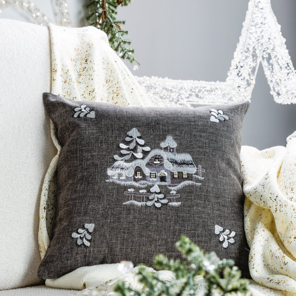 Vánoční dekorační povlak na polštář o rozměrech 45 × 45 cm je krásným doplňkem, který navodí útulnou zimní atmosféru. Barva: ocelová se vzorem zimní krajiny. Je vyroben ze 100% polyesteru o gramáži 200 GSM, který má přirozeně matný vzhled. Přední stranu zdobí jemná aplikace se svátečním motivem, která jí dodává elegantní charakter. Polštář je ideální na pohovku, křeslo nebo postel během svátečního období a stane se stylovou ozdobou vašeho interiéru.Doplňkové parametry