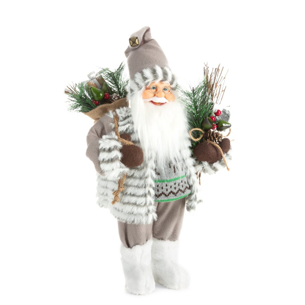 Postava stojícího Santa Clause z jemných látek a kožešin je krásná a propracovaná do nejmenších detailů. Na zádech má pytel naplněný dárky až po okraj. Šířka: 27 cm, délka: 40 cm, barva: pestrobarevná, složení: 50 % plast, 50 % polyester.Doplňkové parametry