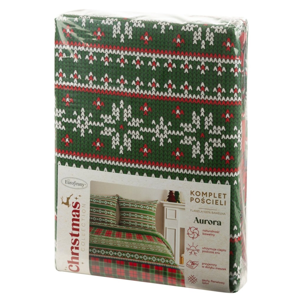 VÁNOČNÍ FLANELOVÉ POVLEČENÍ AURORA 140X200 CM, 1 KS 70X80 CM VZOROVANÉ