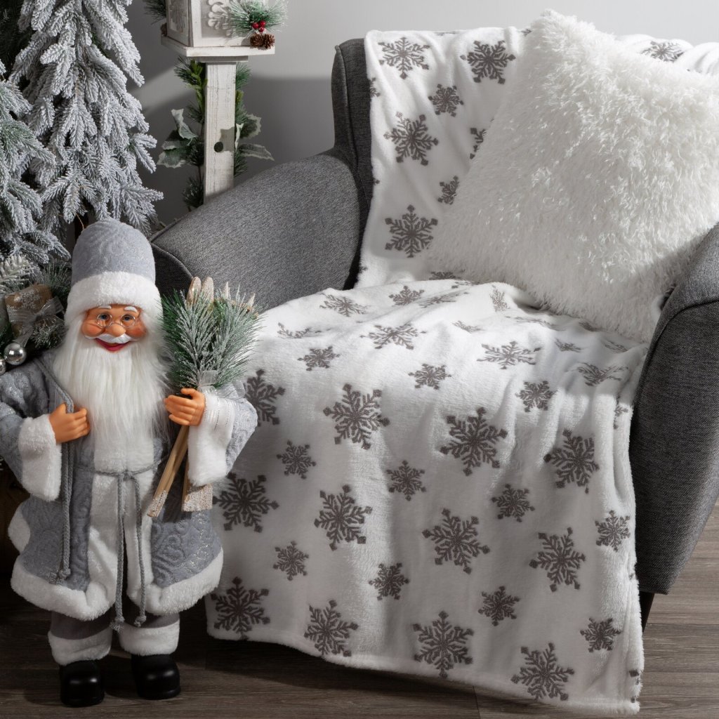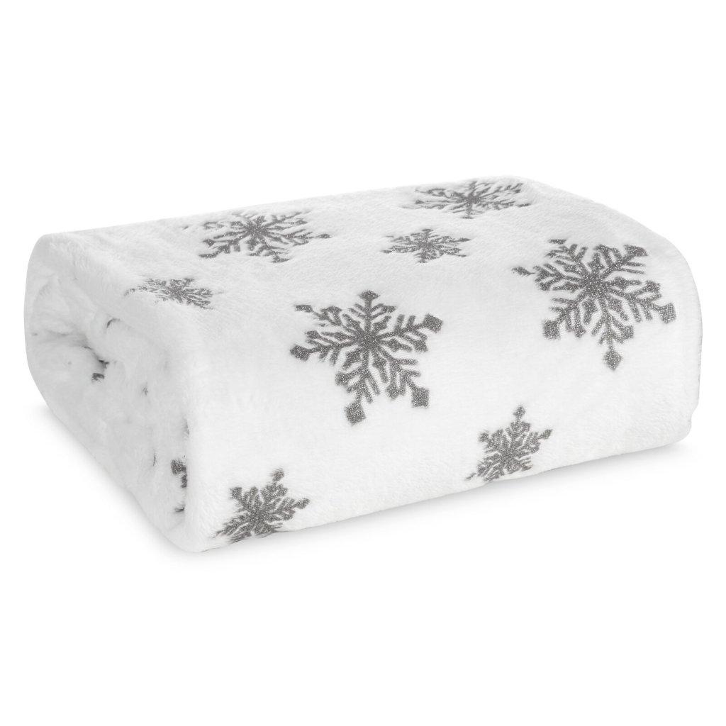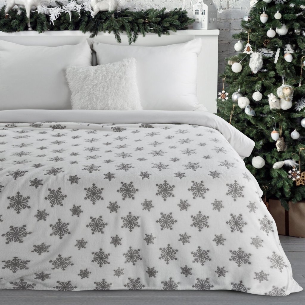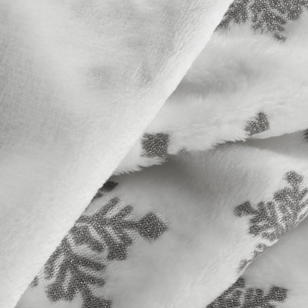 Vánoční deka BLINK z příjemného měkkého fleecu, zdobená sněhovými vločkami , je dokonalým způsobem, jak dodat interiéru zimní a vánoční atmosféru. Fleece je výjimečně měkký na dotek a poskytuje teplo a pohodlí v zimních dnech. Šířka: 150 cm, délka: 200 cm, barva: bílo-stříbrná, hmotnost: 240 GSM, složení: 100% polyester.Doplňkové parametry