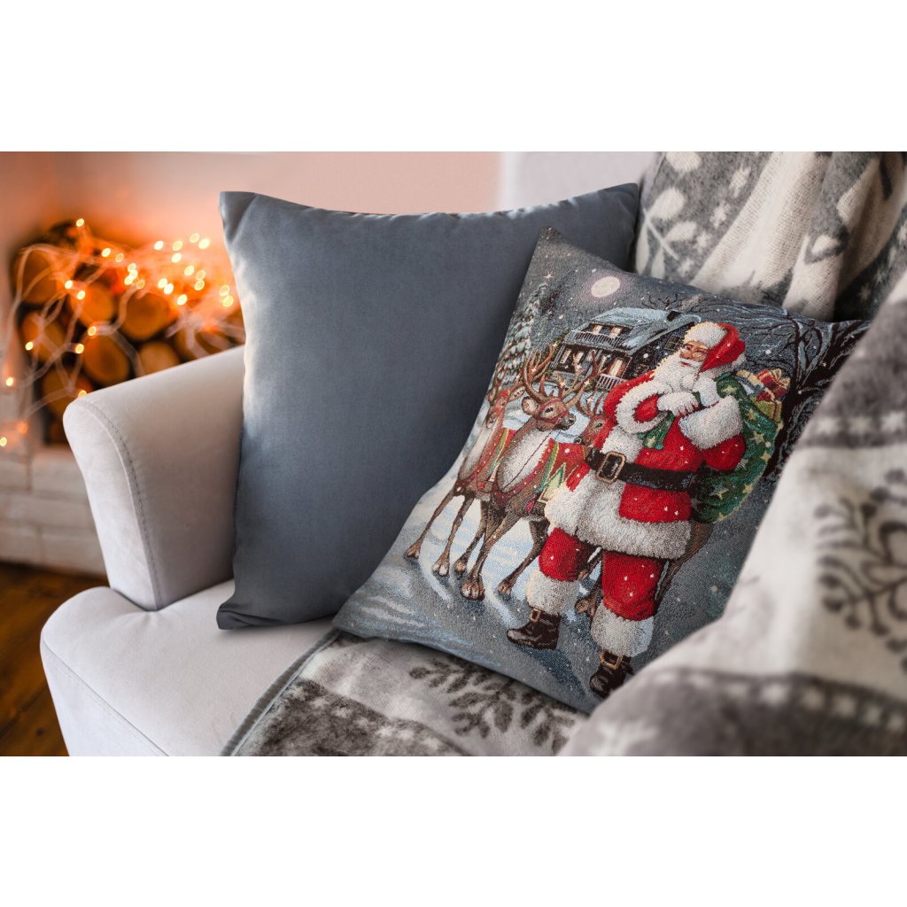 Gobelínový povlak na polštář s vánočním vzorem, šířka: 45 cm, délka: 45 cm, hmotnost: 315 GSM, barva: vícebarevná, složení: 63 % polyester, 34 % bavlna, 3 % akryl.Doplňkové parametry