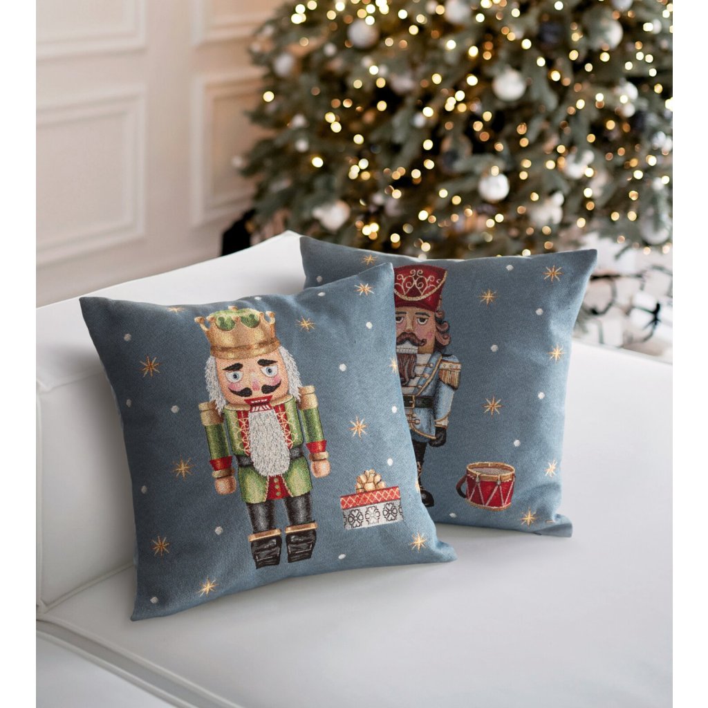 VÁNOČNÍ GOBELÍNOVÁ DEKORAČNÍ POVLAK NA POLŠTÁŘ NUTCRACKE2 45X45 CM VZOROVANÁ