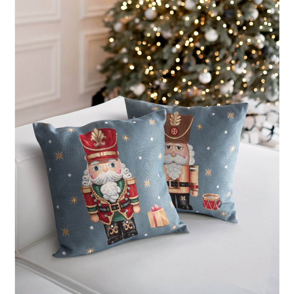 VÁNOČNÍ GOBELÍNOVÁ DEKORAČNÍ POVLAK NA POLŠTÁŘ NUTCRACKER1 45X45 CM VZOROVANÁ