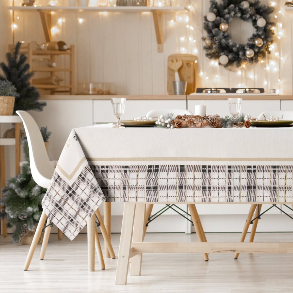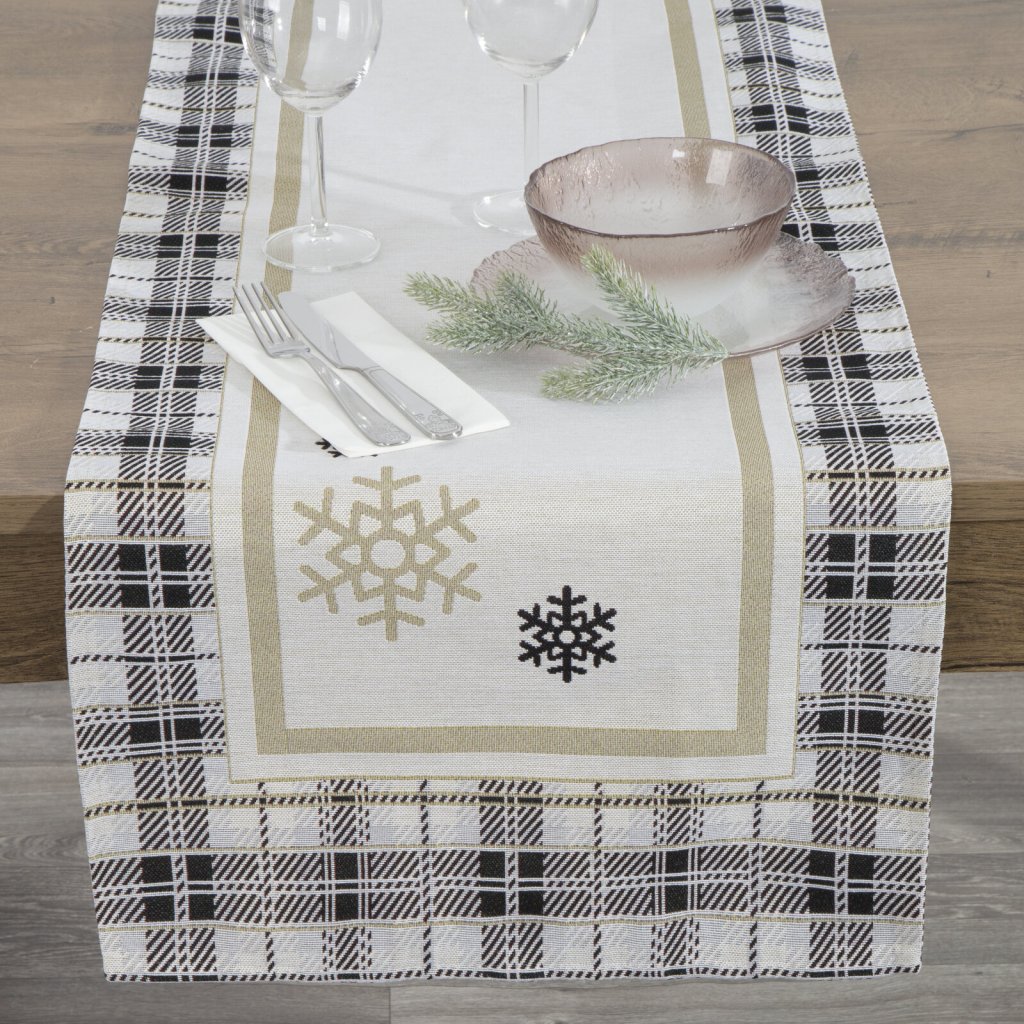 Gobelínový ubrus s vánočním vzorem, šířka: 45 cm, délka: 140 cm, barva: vícebarevná, hmotnost: 410 GSM, složení: 63 % polyester, 34 % bavlna, 3 % akryl.Doplňkové parametry