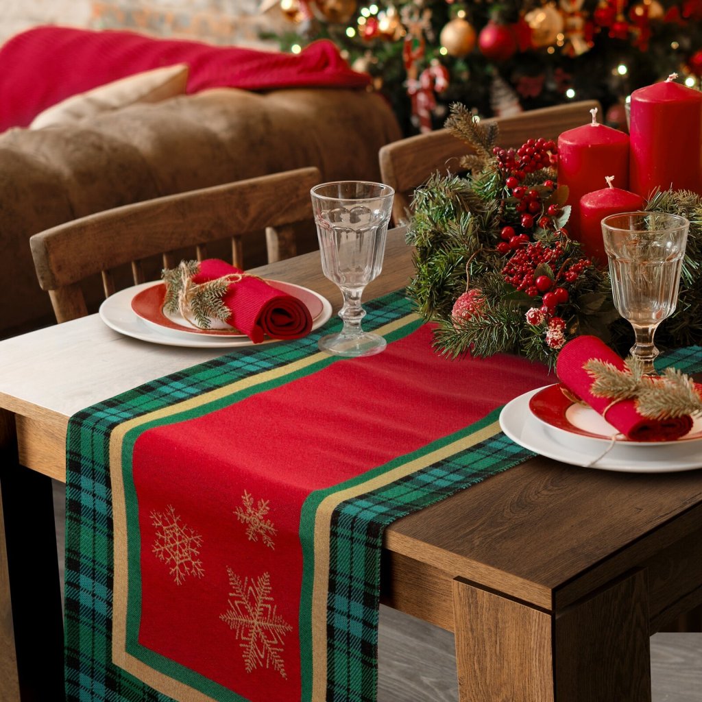Gobelínový ubrus s vánočním vzorem, šířka: 45 cm, délka: 140 cm, barva: vícebarevná, hmotnost: 410 GSM, složení: 75 % polyester, 22 % bavlna, 3 % akryl.Doplňkové parametry
