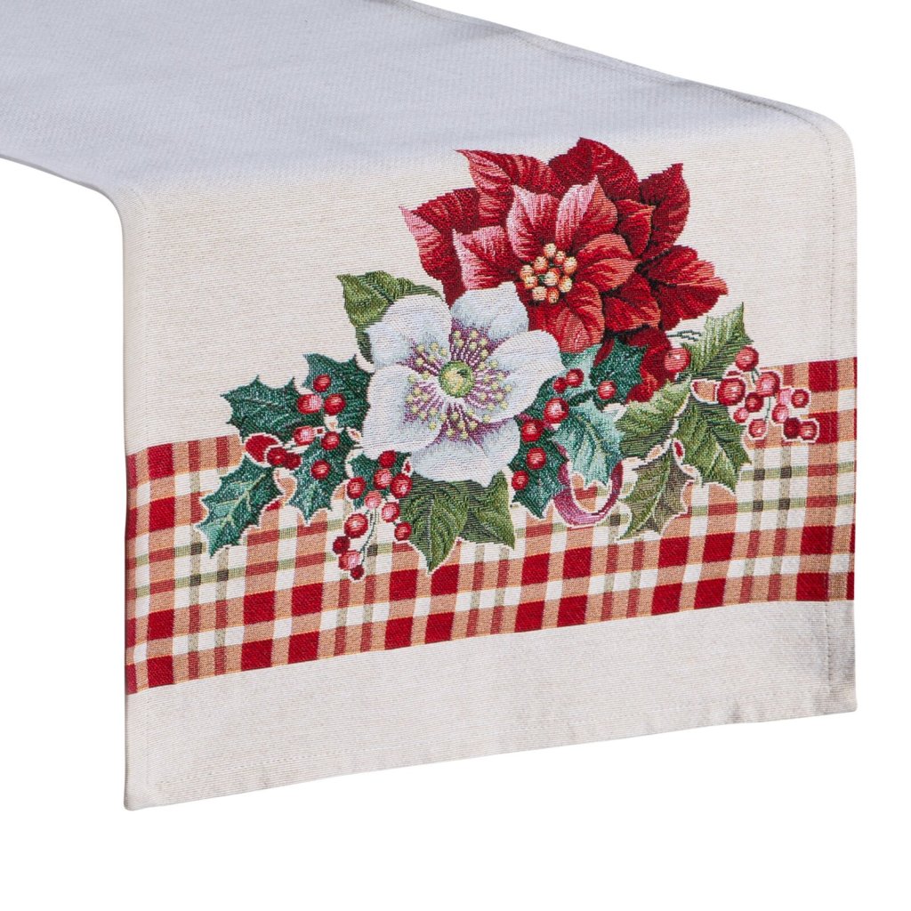 Gobelínový ubrus s vánočním vzorem, šířka: 45 cm, délka: 140 cm, hmotnost: 315 GSM, barva: vícebarevná, složení: 63 % polyester, 34 % bavlna, 3 % akryl.Doplňkové parametry