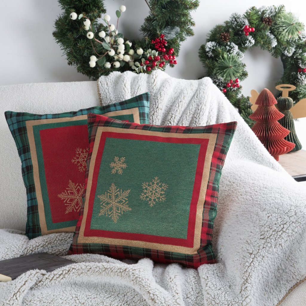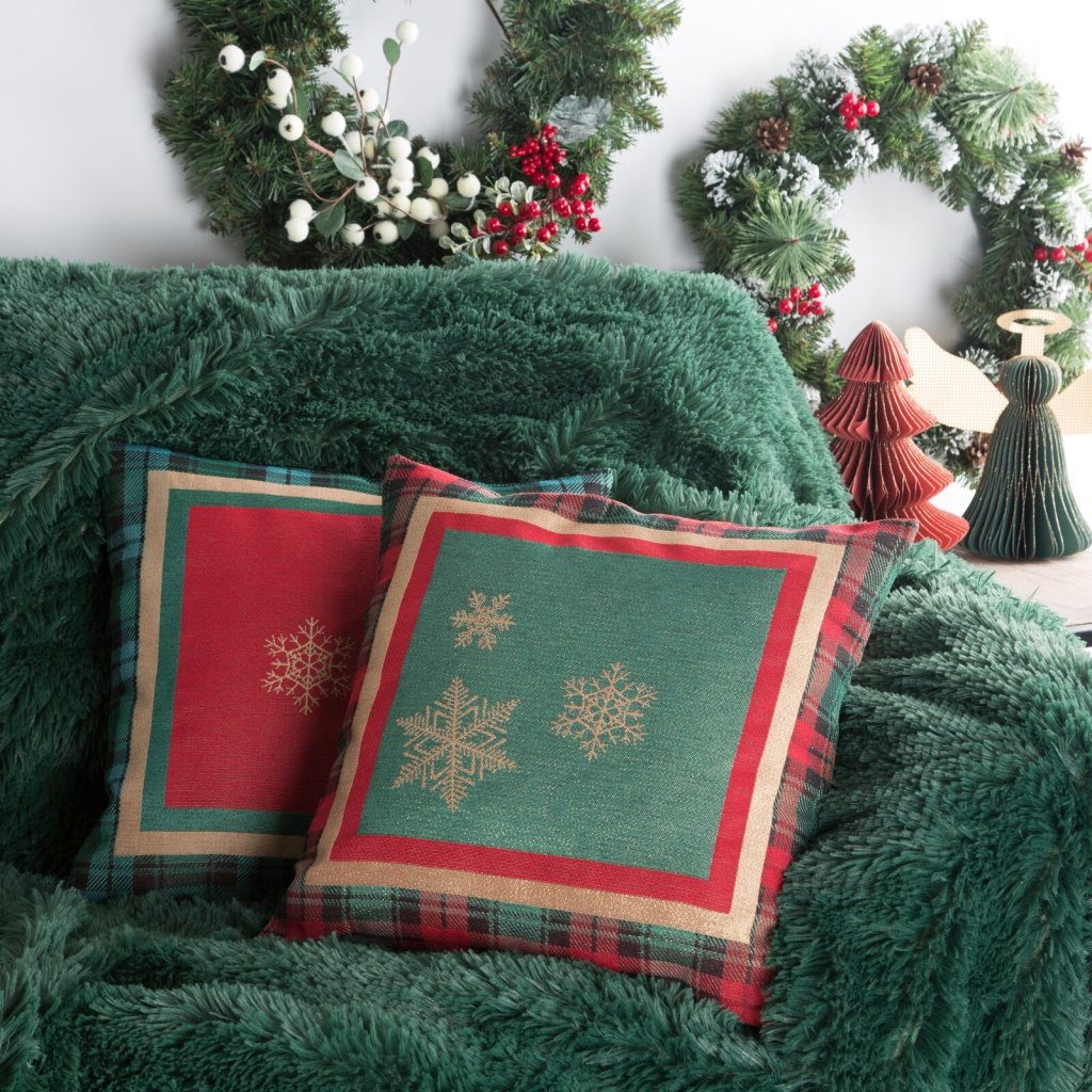 Gobelínový povlak na polštář s vánočním vzorem, šířka: 45 cm, délka: 45 cm, barva: vícebarevná, hmotnost: 340 GSM, složení: 70 % polyester, 23 % bavlna, 4 % akryl, 3 % kovová nit.Doplňkové parametry