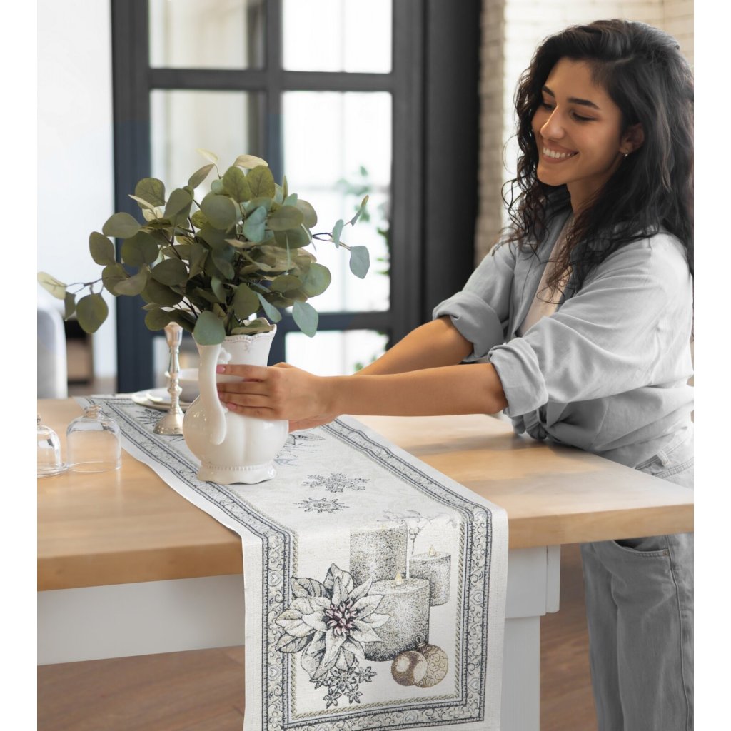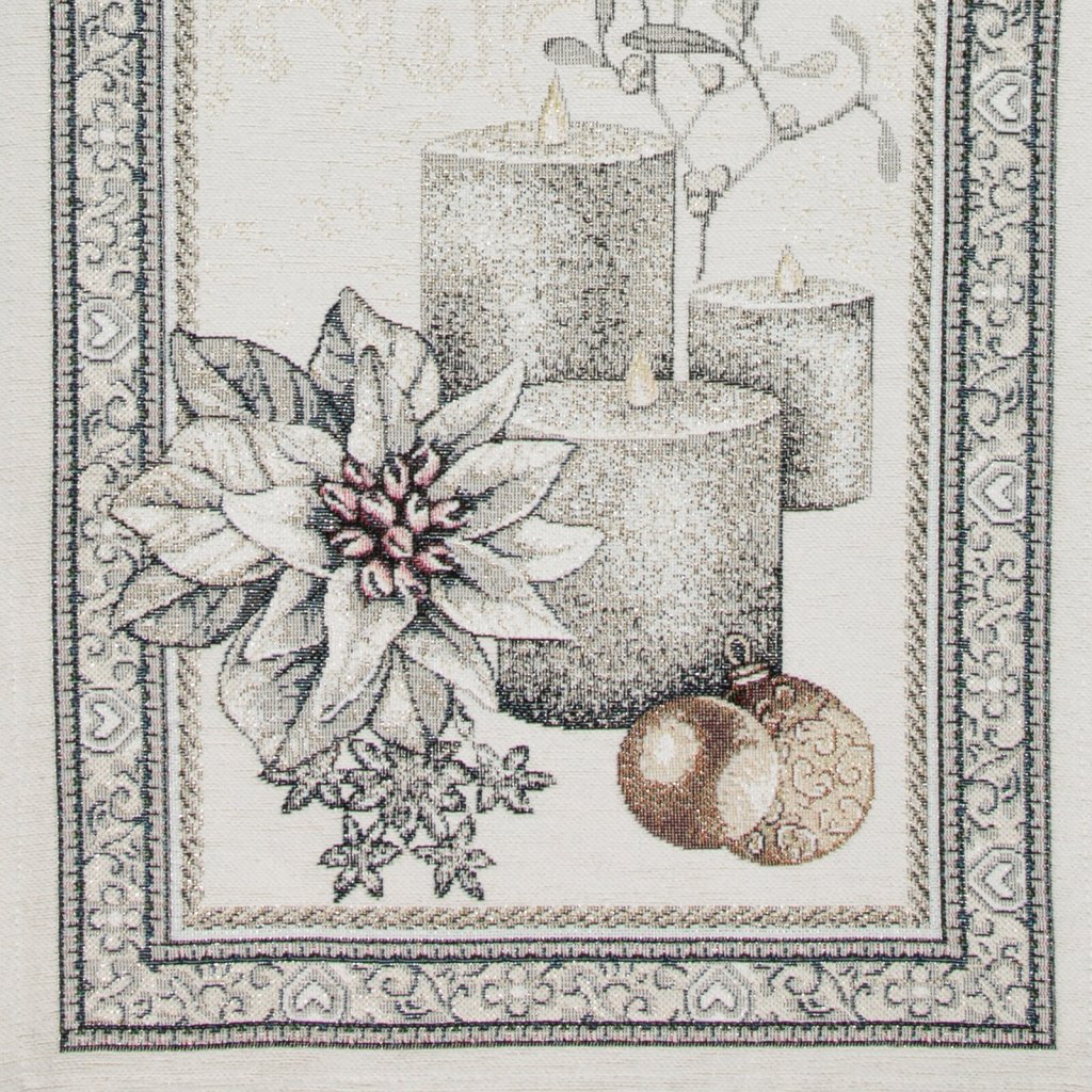 Ubrus ze žinylkového gobelínu s vánočním vzorem, šířka: 100 cm, délka: 100 cm, barva: vícebarevná, hmotnost: 410 GSM, složení: 73 % polyester, 25 % bavlna, 2 % lurex.Doplňkové parametry