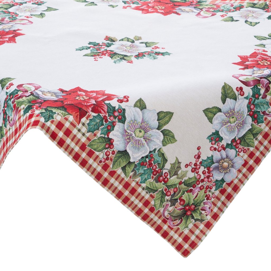 Gobelínový ubrus s vánočním vzorem, šířka: 100 cm, délka: 100 cm, barva: vícebarevná, hmotnost: 315 GSM, složení: 33 % polyester, 34 % bavlna, 17 % akryl.Doplňkové parametry