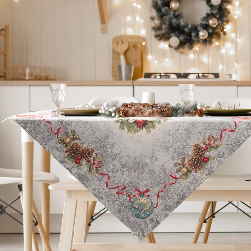 Gobelínový ubrus s vánočním vzorem, šířka: 100 cm, délka: 100 cm, barva: vícebarevná, hmotnost: 410 GSM, složení: 63 % polyester, 34 % bavlna, 3 % akryl.Doplňkové parametry