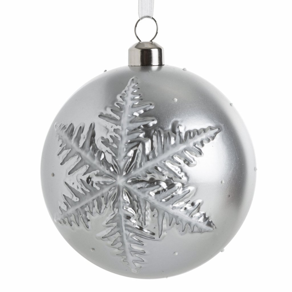 Skleněná koule zdobená 3D efektem sněhové vločky, barva: stříbrná, složení: sklo.Doplňkové parametry