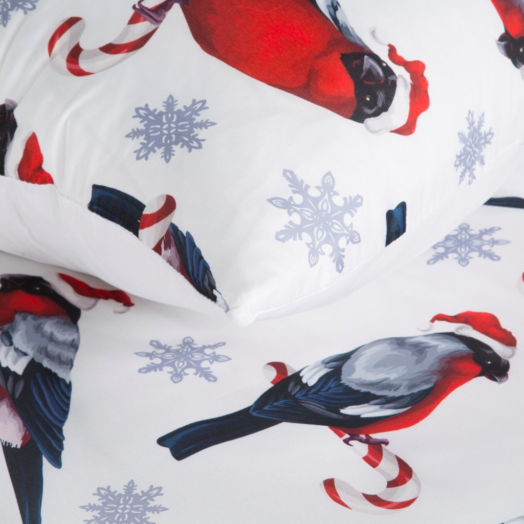 Sada ložního prádla z mikrovlákna MELODY s vánočním motivem. Vyrobeno z vysoce kvalitního polyesteru, jemné na dotek, lehké a rychleschnoucí. Ideální pro zimní období, s krásným vzorem sněhových vloček a ptáčků. Šířka: 160 cm, délka: 200 cm, povlak na polštář 2 ks 70x80 cm, barva: vícebarevná, gramáž: 75 GSM, složení: 100% polyester.Doplňkové parametry