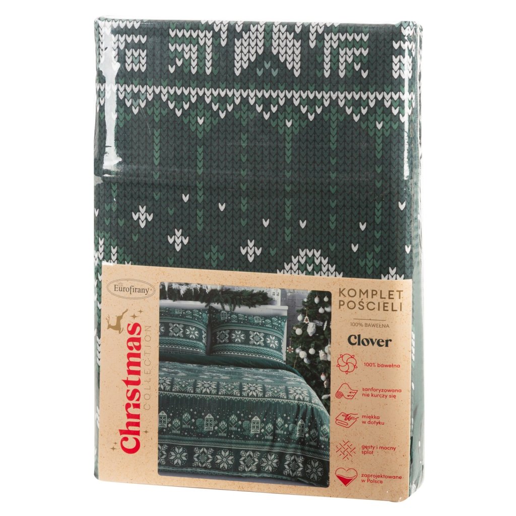 VÁNOČNÍ RENFORCÉ POVLEČENÍ CLOVER 140X200 CM, 1 KS 70X80 CM VZOROVANÉ