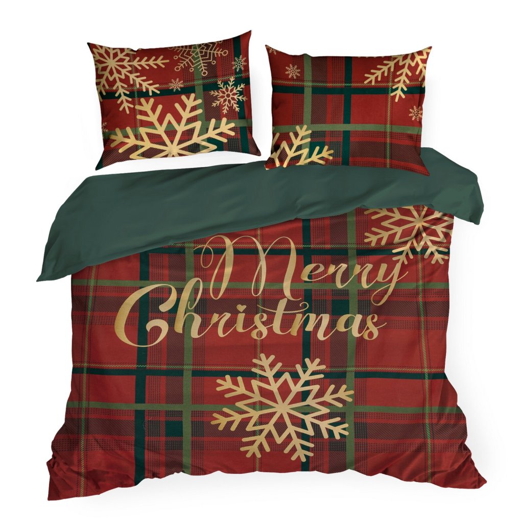 Vneste do své ložnice slavnostní atmosféru díky ložní soupravě ESTRELLA z vysoce kvalitní bavlny Renforcé. Na jedné straně je klasický kostkovaný potisk v kombinaci se zlatými sněhovými vločkami, zatímco druhá strana je jednobarevná v tmavě zelené barvě. Souprava má praktický skrytý zip a její bezpečnost a kvalitu potvrzuje certifikát OEKO-TEX. Šířka: 220 cm, délka: 200 cm, povlak na polštář 2 ks 70x80 cm, barva: vícebarevná, gramáž: 105 GSM, složení: 100% bavlna.Doplňkové parametry