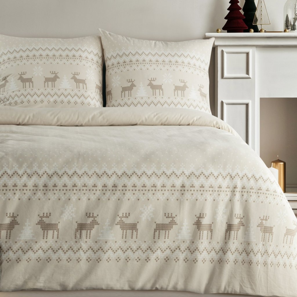 VÁNOČNÍ RENFORCÉ POVLEČENÍ LUKE 200X220 CM, 2 KS 70X80 CM VZOROVANÉ
