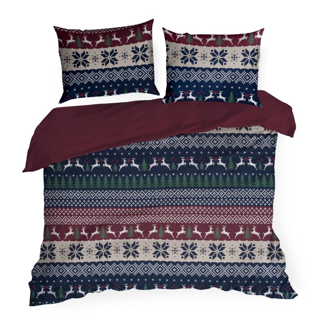VÁNOČNÍ RENFORCÉ POVLEČENÍ SKANDY 140X200 CM, 1 KS 70X80 CM VZOROVANÉ