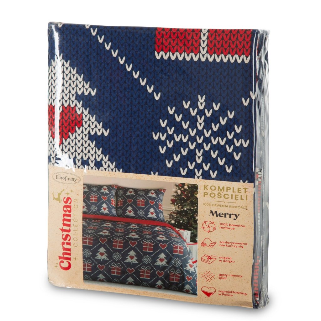 VÁNOČNÍ RENFORCÍ POVLEČENÍ MERRY 200X220 CM, 2KS 70X80 CM VZOROVANÉ