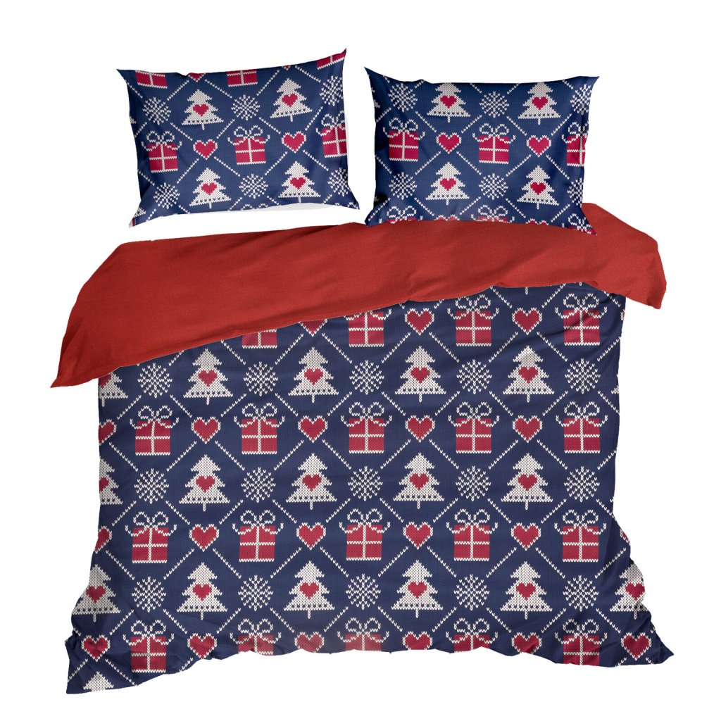 Ložní souprava s vánočním potiskem z renforcované bavlny, šířka: 220 cm, délka: 200 cm, povlaky na polštáře: 2 ks 70x80 cm, barva: pestrobarevná, gramáž: 105 GSM, složení: 100% bavlna.Doplňkové parametry
