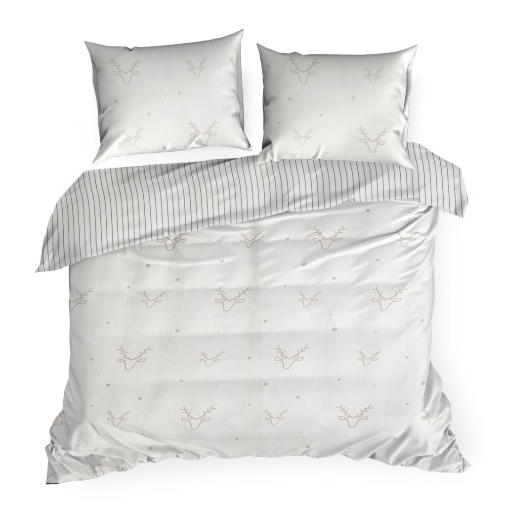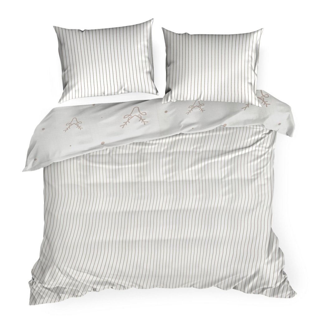Vneste do své ložnice slavnostní atmosféru díky ložní soupravě BOSQUE z kvalitního bavlněného saténu. Jednu stranu zdobí jemný potisk sobů, zatímco druhou zdobí jemné proužky, což dohromady vytváří elegantní, nádherně sváteční efekt, ideální pro zimní večery a vánoční období. Souprava má praktický skrytý zip a její bezpečnost a kvalitu potvrzuje certifikát OEKO-TEX. Šířka: 140 cm, délka: 200 cm, povlak na polštář 1 ks 70x80 cm, barva: vícebarevná, gramáž: 125 GSM, složení: 100% bavlna.Doplňkové parametry