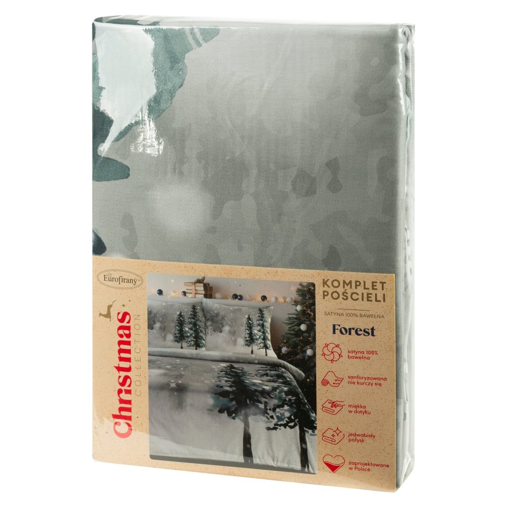 VÁNOČNÍ SATÉNOVÉ POVLEČENÍ FOREST 140X200 CM, 1 KS 70X80 CM VZOROVANÉ