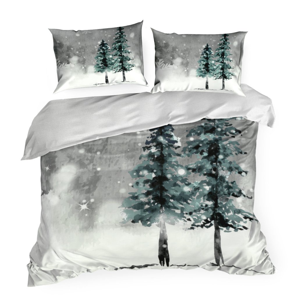VÁNOČNÍ SATÉNOVÉ POVLEČENÍ FOREST 160X200 CM, 2 KS 70X80 CM VZOROVANÉ