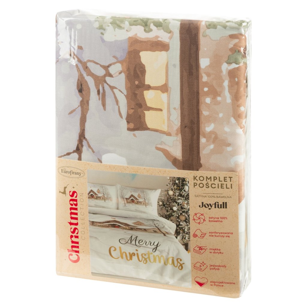 Vneste do své ložnice slavnostní atmosféru díky ložní soupravě JOYFULL z kvalitního bavlněného saténu. Jemný lesk materiálu v kombinaci s potiskem vánoční vesnice vytváří elegantní, nádherně sváteční efekt, který je ideální pro zimní večery a vánoční období. Souprava má praktický skrytý zip a její bezpečnost a kvalitu potvrzuje certifikát OEKO-TEX. Šířka: 160 cm, délka: 200 cm, povlak na polštář 2 ks 70x80 cm, barva: pestrobarevná, gramáž: 115 GSM, složení: 100% bavlna.Doplňkové parametry