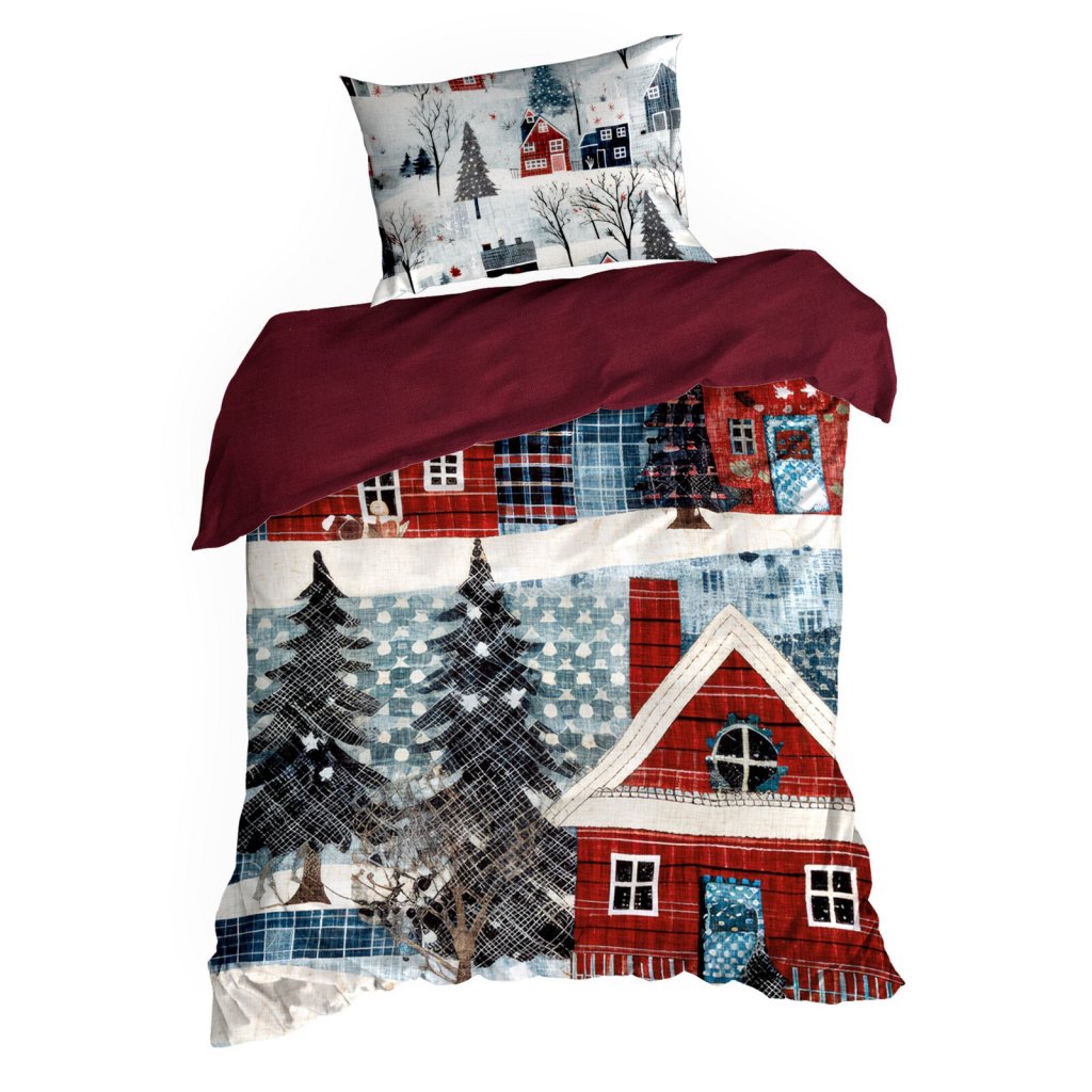 Vneste do své ložnice slavnostní atmosféru díky ložní soupravě NIKO z kvalitního bavlněného saténu. Jemný lesk materiálu v kombinaci s potiskem vánoční vesnice vytváří elegantní, nádherně sváteční efekt, který je ideální pro zimní večery a vánoční období. Souprava má praktický skrytý zip a její bezpečnost a kvalitu potvrzuje certifikát OEKO-TEX. Šířka: 140 cm, délka: 200 cm, povlak na polštář 1 ks 70x80 cm, barva: vícebarevná, gramáž: 115 GSM, složení: 100% bavlna.Doplňkové parametry