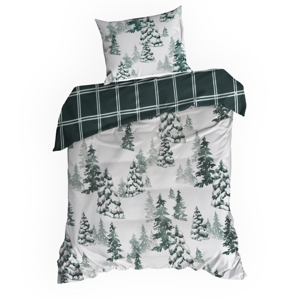 Vneste do své ložnice slavnostní atmosféru díky ložní soupravě WINTER z vysoce kvalitního bavlněného saténu. Jednu stranu zdobí jemný lesní potisk, zatímco druhou zdobí jemné proužky - celek vytváří elegantní, nádherně sváteční efekt, ideální pro zimní večery a vánoční období. Souprava má praktický skrytý zip a její bezpečnost a kvalitu potvrzuje certifikát OEKO-TEX. Šířka: 220 cm, délka: 200 cm, povlak na polštář 2 ks 70x80 cm, barva: vícebarevná, gramáž: 125 GSM, složení: 100% bavlna.Doplňkové parametry