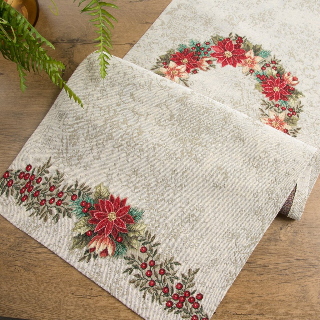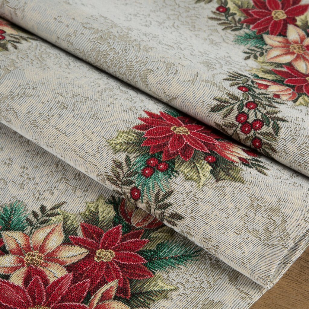 Gobelínový ubrus, šířka: 47 cm, délka: 140 cm, barva: vícebarevná, hmotnost: 410 GSM, složení: 100% polyester.Doplňkové parametry