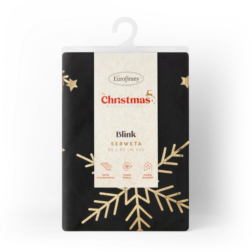 Dodejte sváteční nádech svému stolu s elegantním vánočním ubrusem ELEGANCE. Je vyroben z měkkého sametového materiálu, který vypadá luxusně a je příjemný na dotek. Zdobí ho potisk fólie ve zlaté barvě se vzorem sněhových vloček a hvězdiček, který na černém pozadí vytváří jedinečný kontrast. Šířka: 85 cm, délka: 85 cm, barva: černá a zlatá, hmotnost: 210 GSM, složení: 100% polyester.Buďte první, kdo napíše příspěvek k této položce.
