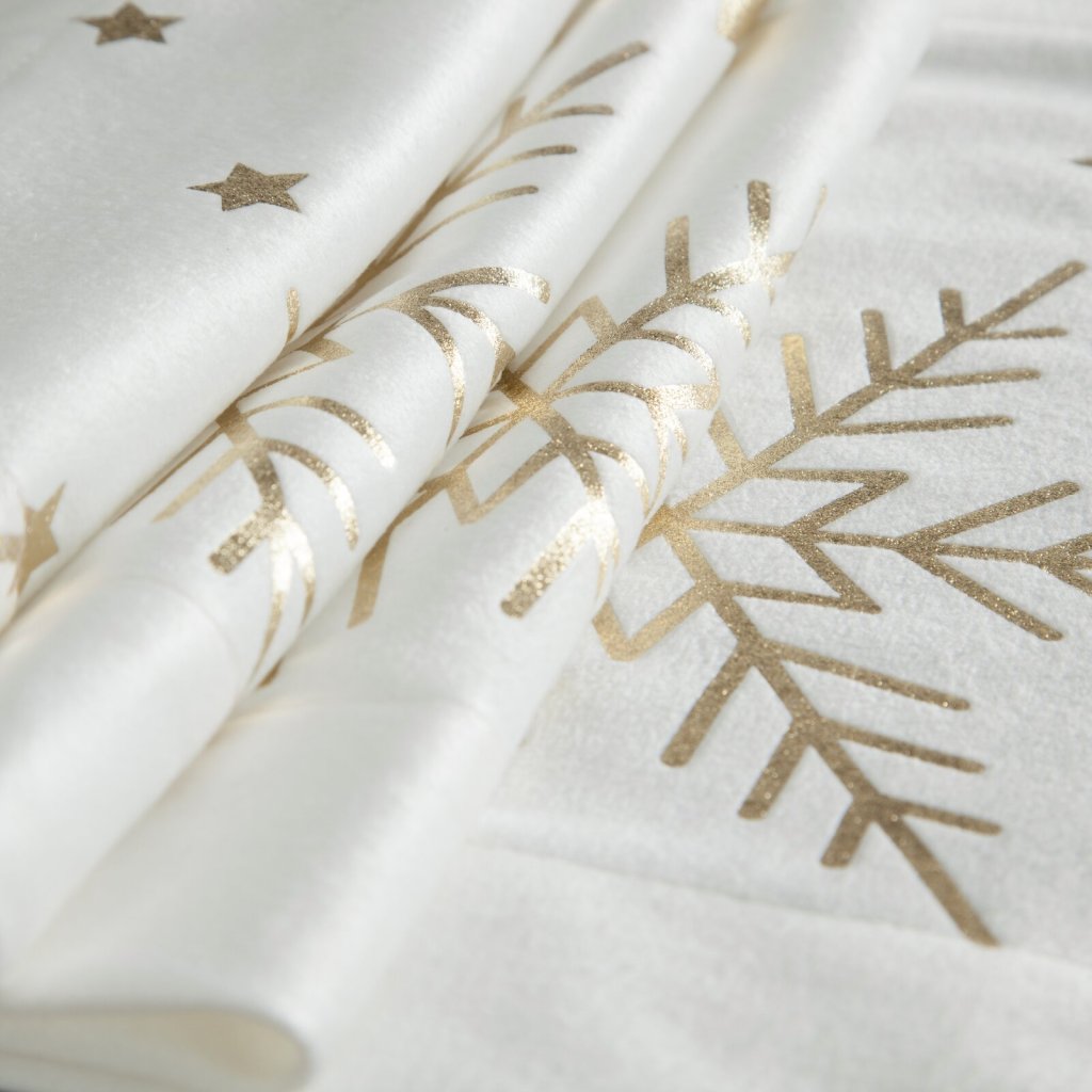 Dodejte sváteční nádech svému stolu s elegantním vánočním ubrusem ELEGANCE. Je vyroben z měkkého sametového materiálu, který vypadá luxusně a je příjemný na dotek. Zdobí ho potisk fólie ve zlaté barvě se vzorem sněhových vloček a hvězdiček, který na bílém podkladu vytváří jedinečný kontrast. Šířka: 85 cm, délka: 85 cm, barva: bílá a zlatá, hmotnost: 210 GSM, složení: 100% polyester.Buďte první, kdo napíše příspěvek k této položce.