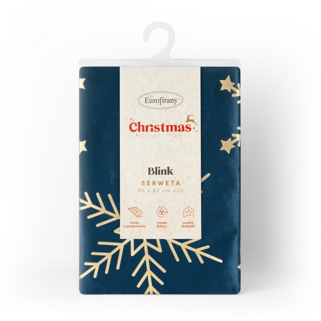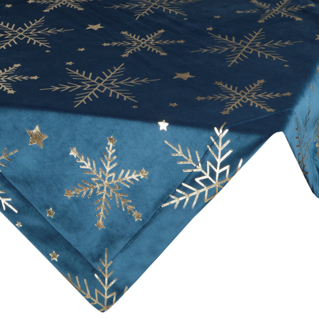 Dodejte sváteční nádech svému stolu s elegantním vánočním ubrusem ELEGANCE. Je vyroben z měkkého sametového materiálu, který vypadá luxusně a je příjemný na dotek. Zdobí ho potisk fólie ve zlaté barvě se vzorem sněhových vloček a hvězdiček, který na tmavě modrém podkladu vytváří jedinečný kontrast. Šířka: 85 cm, délka: 85 cm, barva: tmavě modrá a zlatá, hmotnost: 210 GSM, složení: 100% polyester.Buďte první, kdo napíše příspěvek k této položce.