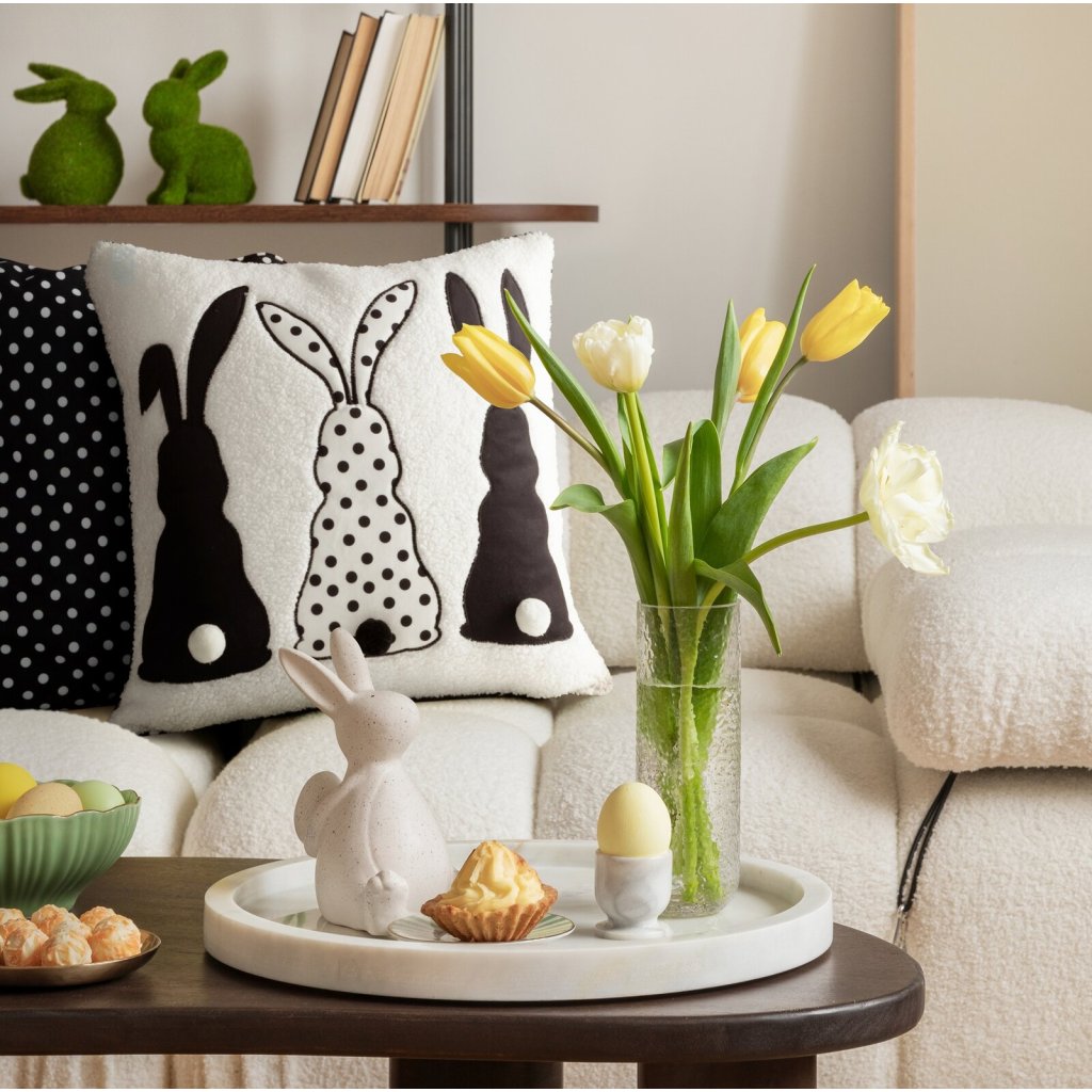 Vneste do svého interiéru sváteční jarní atmosféru s elegantním dekoračním povlakem na polštář s velikonočním motivem. Je vyroben z měkké, na dotek příjemné velurové tkaniny a dodá vašemu interiéru útulný a stylový ráz. Jeho povrch zdobí potisk, který skvěle doplňuje velikonoční aranžmá. Výměna je možná díky skrytému zipu. Šířka: 45 cm, délka: 45 cm, barva: vícebarevná, hmotnost: 140 GSM, složení: 100% polyester.Doplňkové parametry