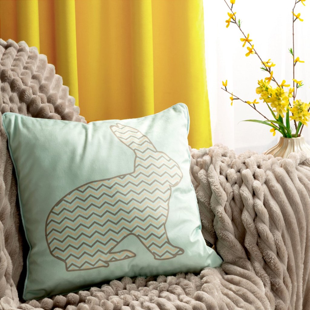 Vneste do svého interiéru sváteční jarní atmosféru s elegantním dekoračním povlakem na polštář s velikonočním motivem. Je vyroben z měkké, na dotek příjemné velurové tkaniny a dodá vašemu interiéru útulný a stylový ráz. Jeho povrch zdobí potisk, který skvěle doplňuje velikonoční aranžmá. Výměna je možná díky skrytému zipu. Šířka: 45 cm, délka: 45 cm, barva: vícebarevná, hmotnost: 140 GSM, složení: 100% polyester.Doplňkové parametry