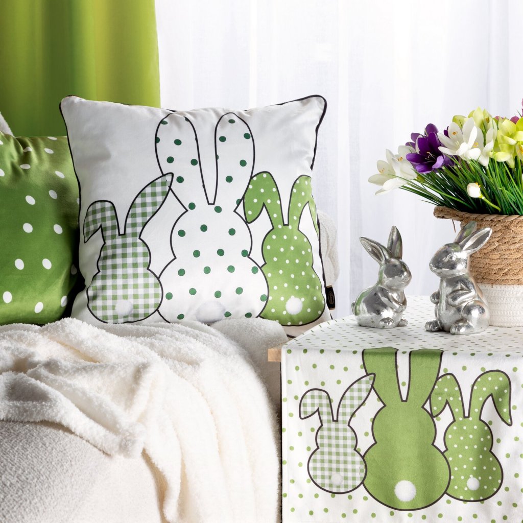 Vneste do svého interiéru sváteční jarní atmosféru s elegantním dekoračním povlakem na polštář s velikonočním motivem. Je vyroben z měkké, na dotek příjemné velurové tkaniny a dodá vašemu interiéru útulný a stylový ráz. Jeho povrch zdobí potisk, který skvěle doplňuje velikonoční aranžmá. Výměna je možná díky skrytému zipu. Šířka: 45 cm, délka: 45 cm, barva: vícebarevná, hmotnost: 140 GSM, složení: 100% polyester.Doplňkové parametry