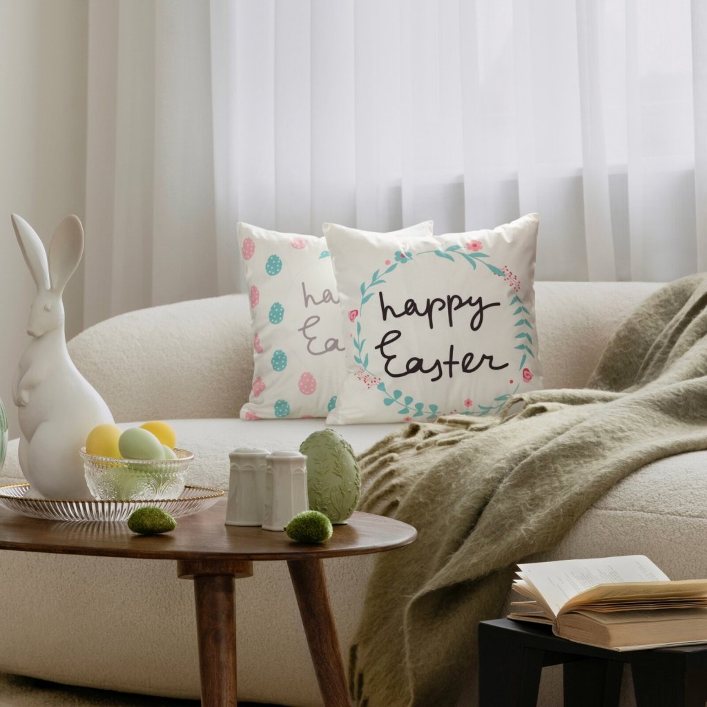 VELIKONOČNÍ DEKORAČNÍ POVLAK NA POLŠTÁŘ EASTER4 45X45 CM VZOROVANÁ