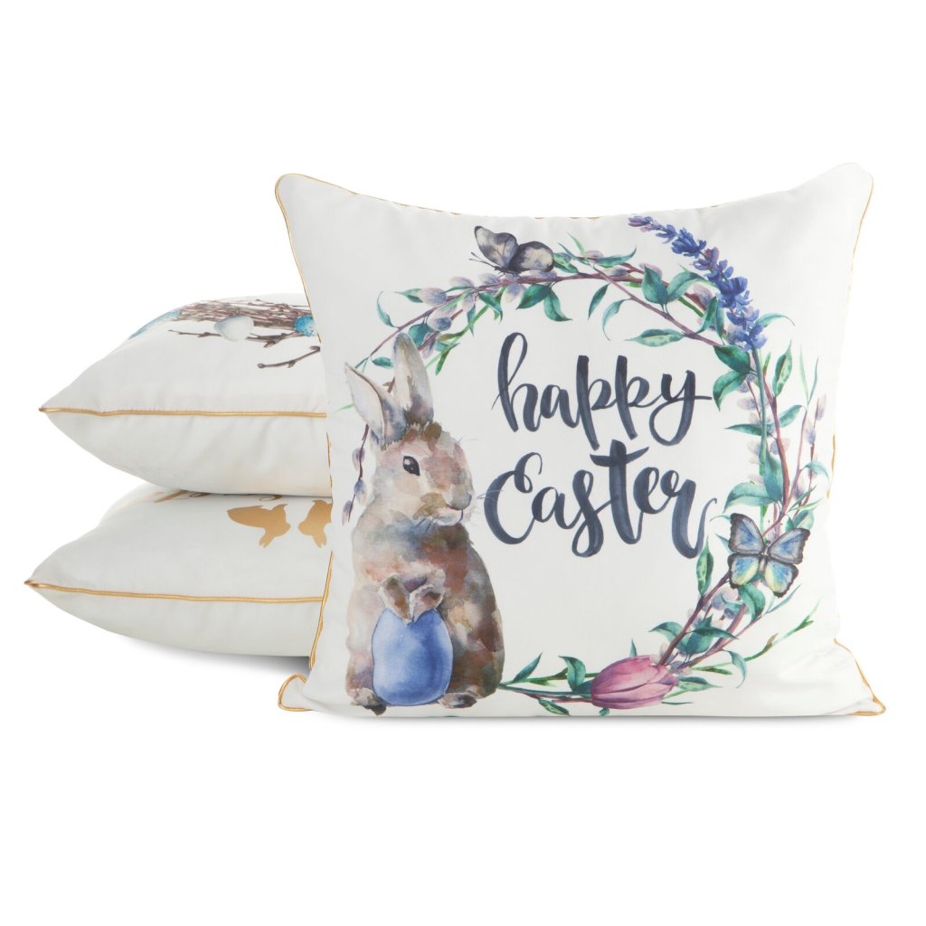 Vytvořte ve svém interiéru sváteční atmosféru s velikonočním dekoračním povlakem na polštář z příjemného měkkého materiálu. Povlak na polštář je zdoben stylovým velikonočním potiskem, který mu dodává jedinečné kouzlo. Celý obvod je zakončen elegantním zlatým lemem, který dekoraci dodává jemný nádech luxusu. Šířka: 45 cm, délka: 45 cm, barva: pestrobarevná, gramáž: 140 GSM, složení: 100% polyester.Doplňkové parametry