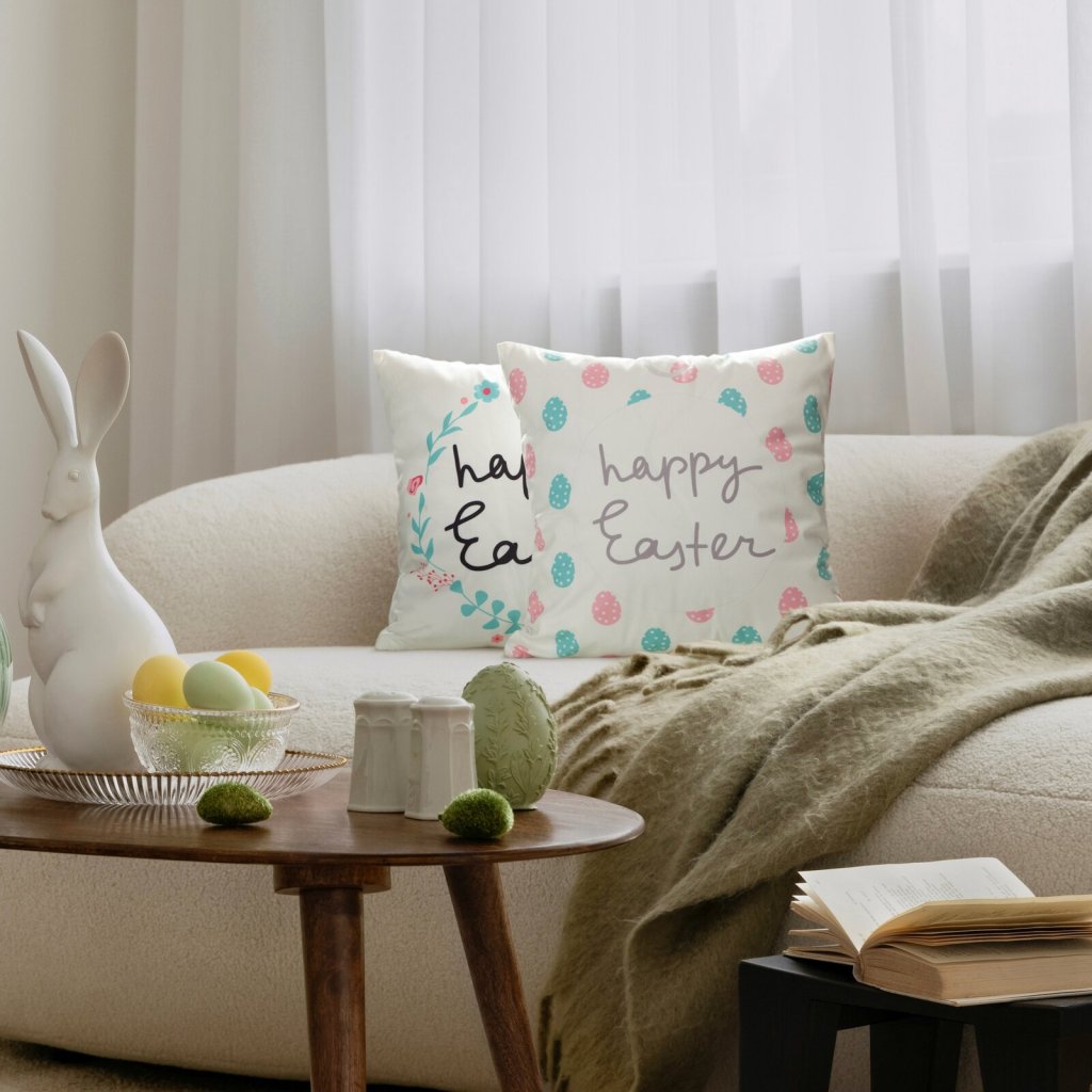VELIKONOČNÍ DEKORAČNÍ POVLAK NA POLŠTÁŘ EASTER9 45X45 CM VZOROVANÁ