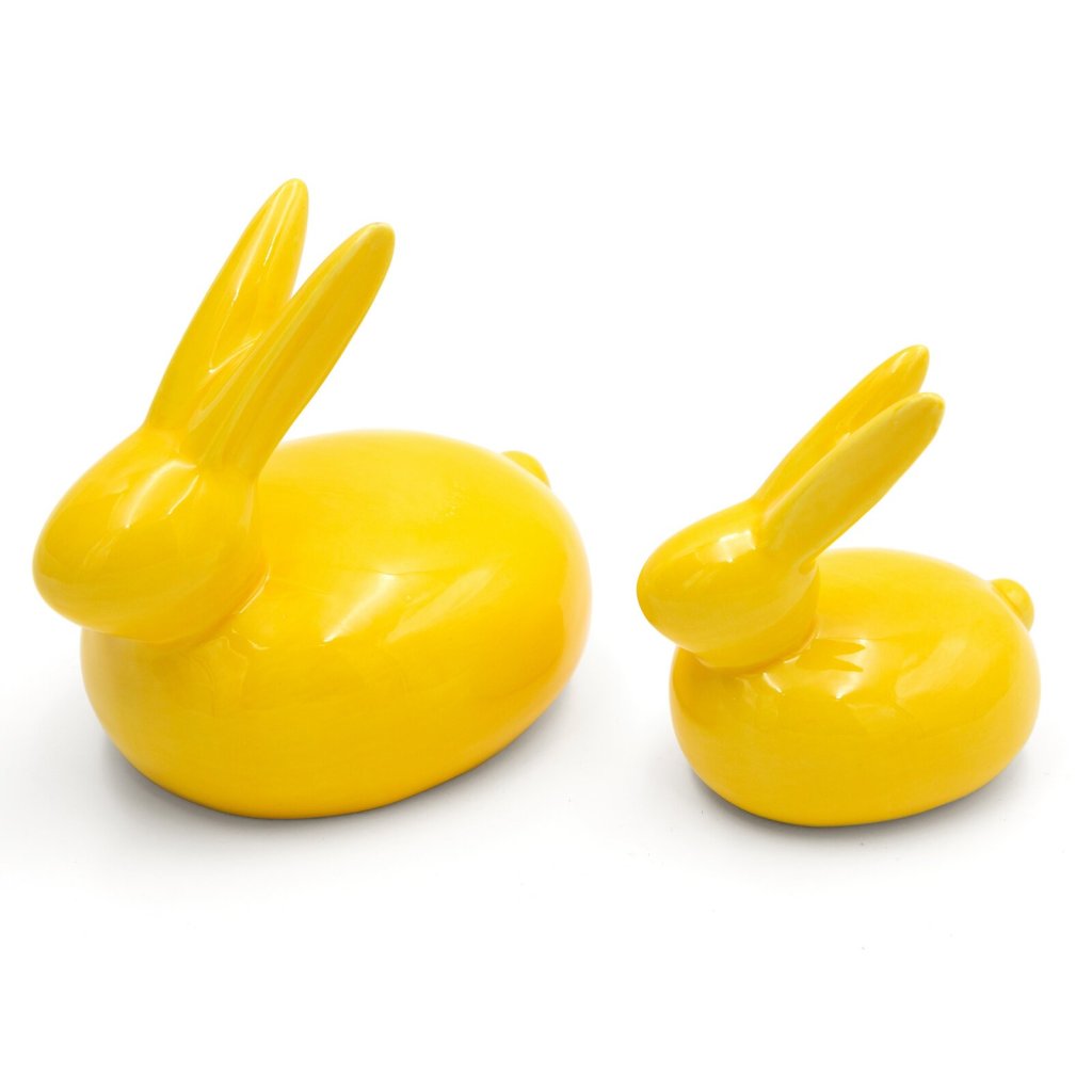 Oživte svou velikonoční výzdobu rozkošným hliněným zajíčkem v intenzivní, zářivé žluté barvě! Jeho lesklý povrch krásně odráží světlo a dodá vašemu interiéru teplo a sváteční náladu. Díky pečlivému zpracování a klasickému tvaru bude figurka skvěle sloužit jako dekorace. Šířka: 14 cm, délka: 13 cm, barva: žlutá, složení: keramická hlína.Doplňkové parametry