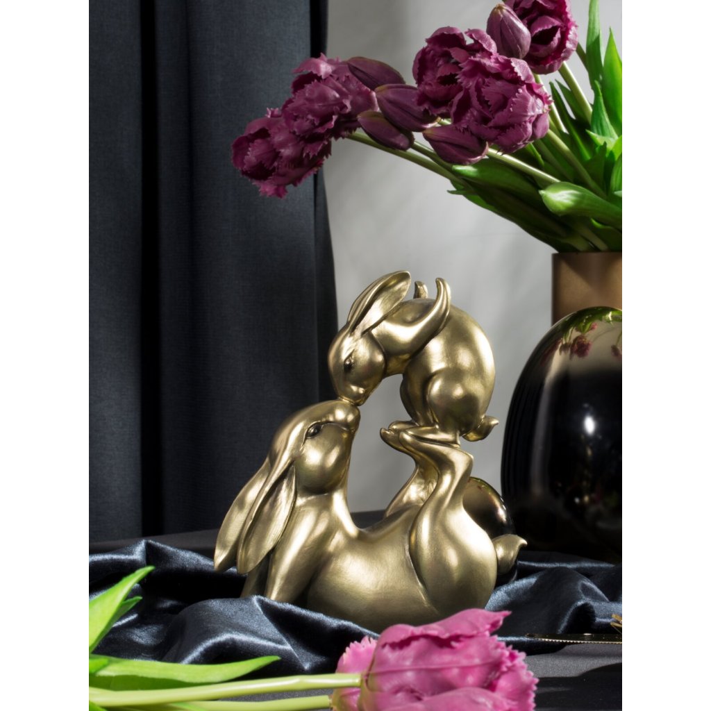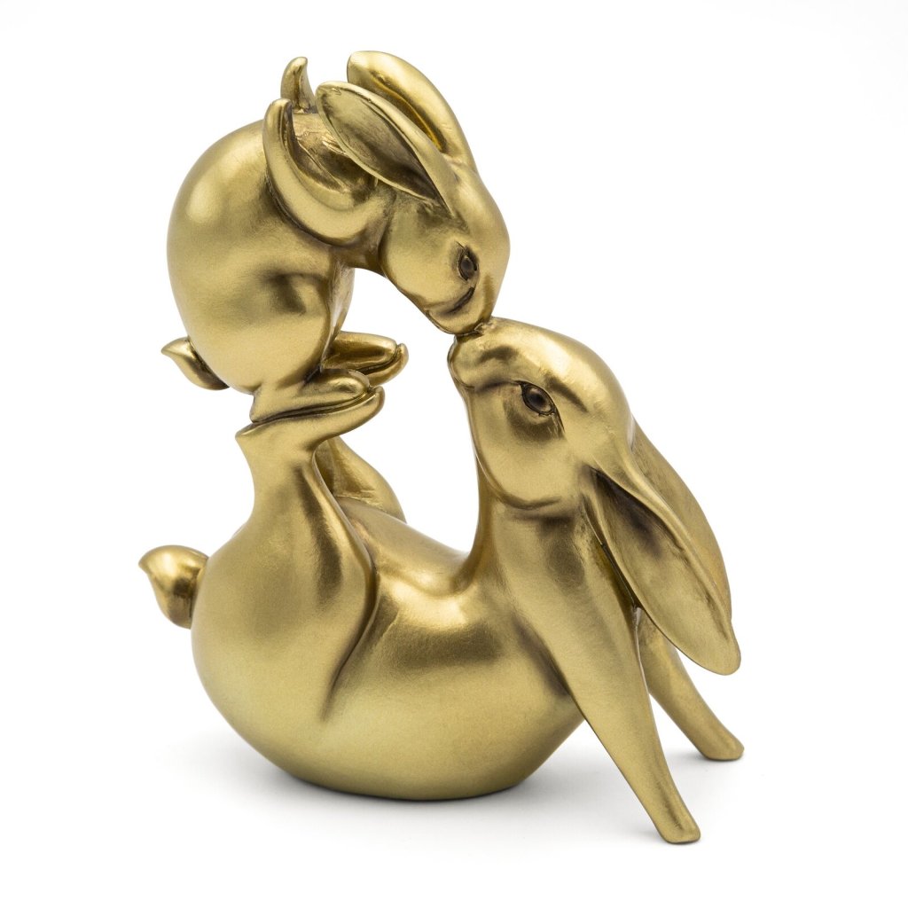 Elegantní a stylová velikonoční dekorace v podobě rodiny zajíčků, vyrobená z odolné polyesterové pryskyřice. Jejich jemný, matný zlatý povrch dodává sošce rafinovaný nádech a vytváří harmonický a luxusní akcent ve svátečních aranžmá. sošky potěší precizním zpracováním a jemnými detaily, které jim dodávají jedinečné kouzlo. Šířka: 16 cm, délka: 18 cm, barva: zlatá, složení: polyesterová pryskyřice.Doplňkové parametry
