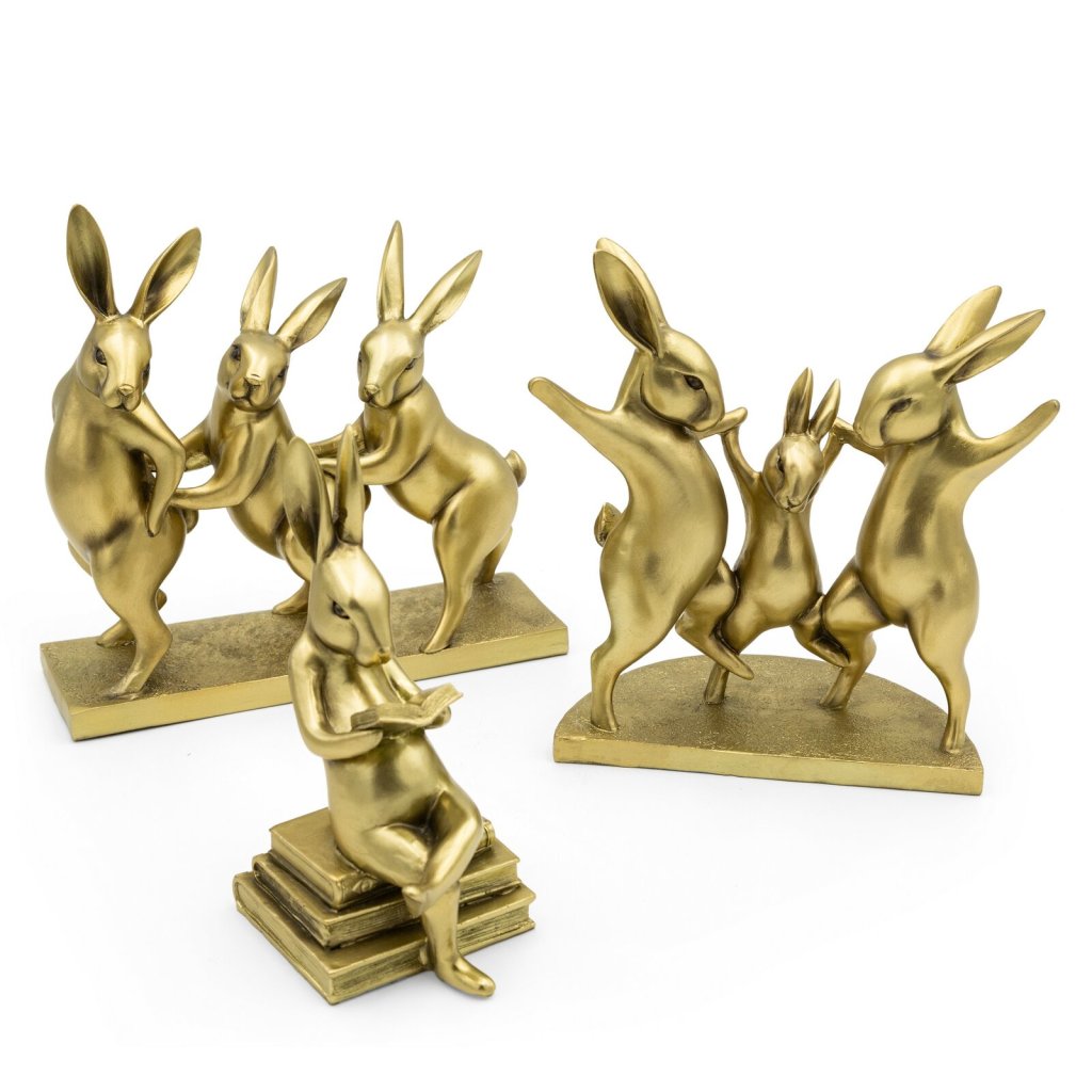 Elegantní a stylová velikonoční dekorace v podobě rodiny zajíčků, vyrobená z odolné polyesterové pryskyřice. Jejich jemný, matný zlatý povrch dodává sošce rafinovaný nádech a vytváří harmonický a luxusní akcent ve svátečních aranžmá. sošky potěší precizním zpracováním a jemnými detaily, které jim dodávají jedinečné kouzlo. Šířka: 22 cm, délka: 23 cm, barva: zlatá, složení: polyesterová pryskyřice.Doplňkové parametry