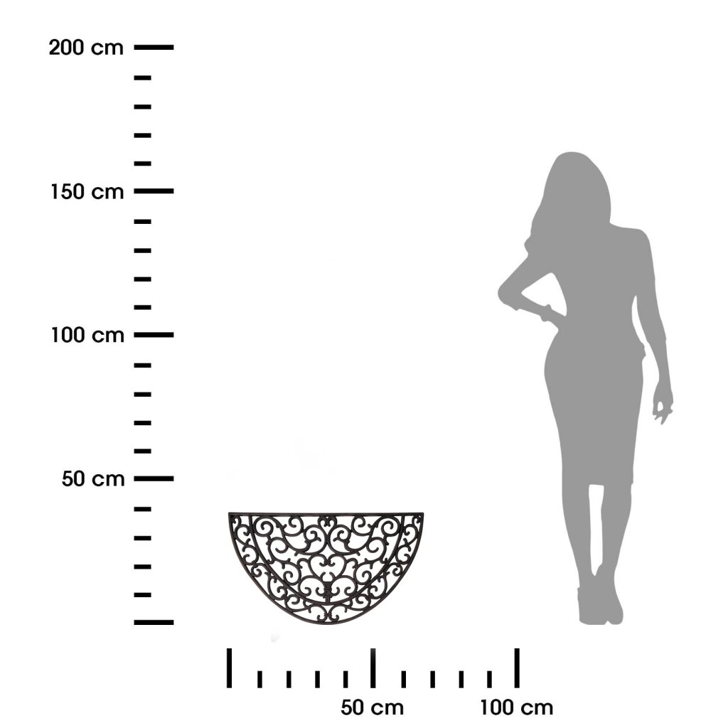 Vnější rohožka Giselle o rozměrech 66,3 × 39,2 cm v sobě spojuje elegantní viktoriánský styl a praktickou funkčnost. Její půlkruhový tvar a jemný azurový vzor dělají z tohoto modelu nejen užitečný, ale i esteticky výrazný doplněk vstupního prostoru.