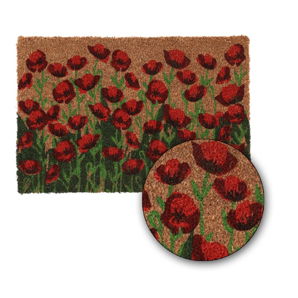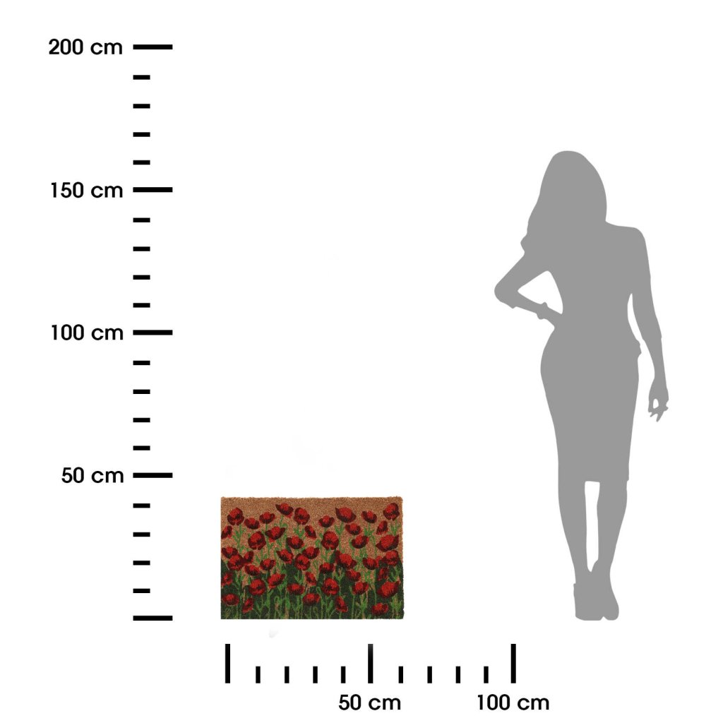 Vnější rohožka Poppies o rozměrech 60 × 40 cm je originálním a dekorativním doplňkem každého vstupu. Její povrch zdobí nápaditý motiv červených máků , který upoutá pozornost a dodá prostoru veselý a přírodní charakter.