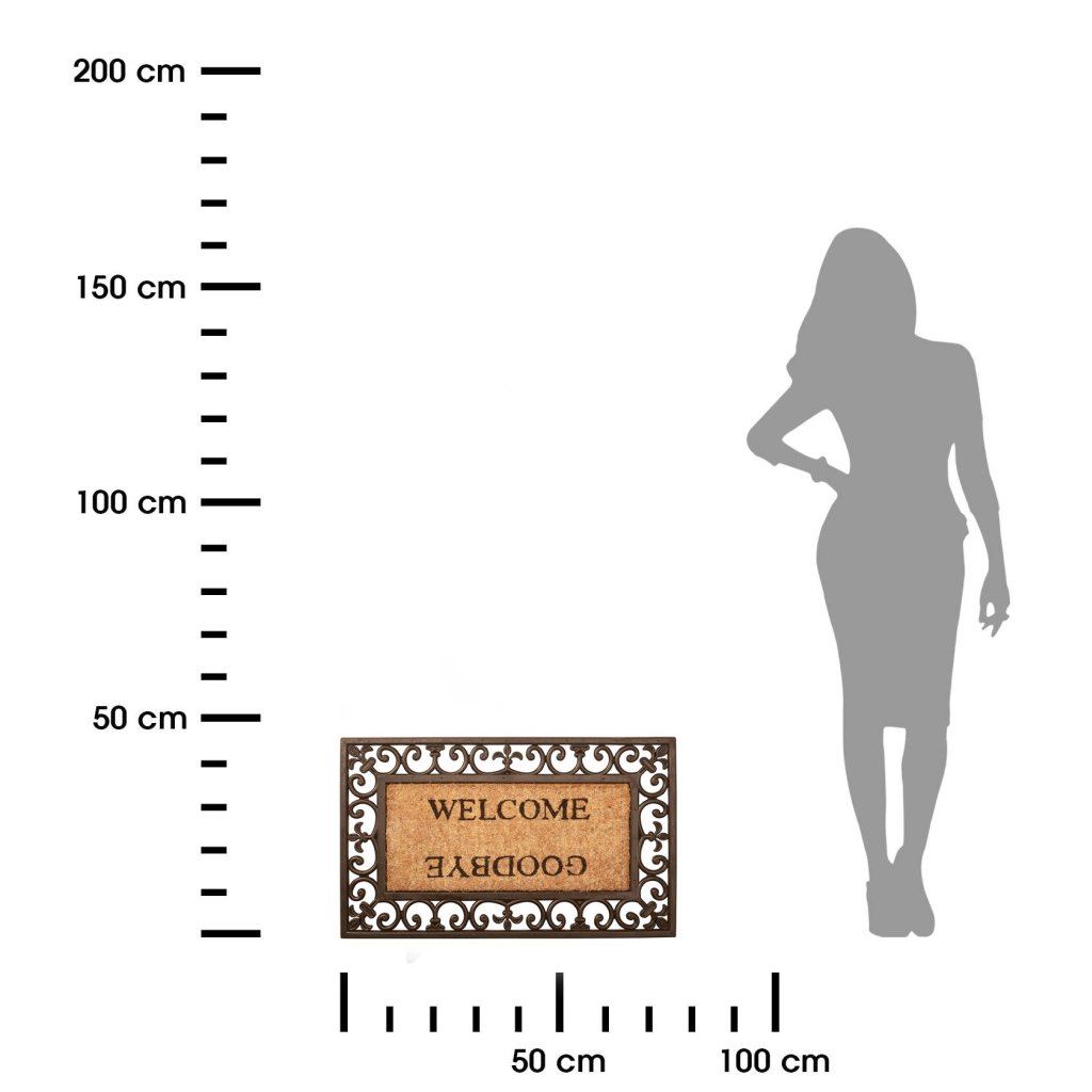 Funkční rohožka spojující krásný viktoriánský styl s kvalitními materiály a efektivním odstraňováním nečistot z bot. Kokosová vlákna dokonale odstraňují nečistoty a prach z bot, což pomáhá udržovat domácnost v čistotě. Rohožka je vyrobena ve viktoriánském stylu a vyznačuje se krásně zdobeným okrajem. V její centrální části jsou nápisy Welcome a Goodbye. Rohožku lze použít v domě i venku. Dokonale funguje na schodištích, terasách či balkonech. Pryžová spodní část rohožky poskytuje dodatečnou přilnavost.Doplňkové parametry