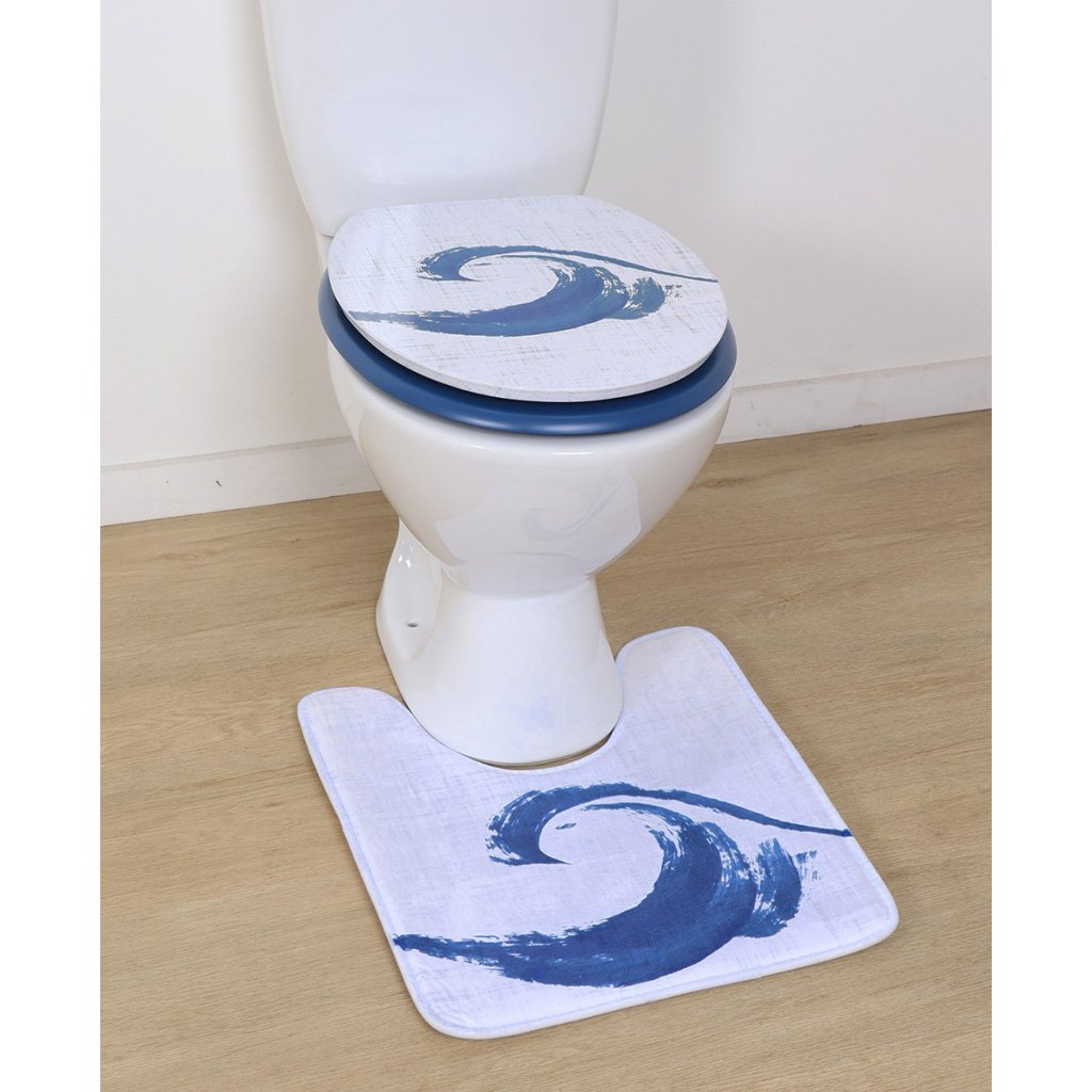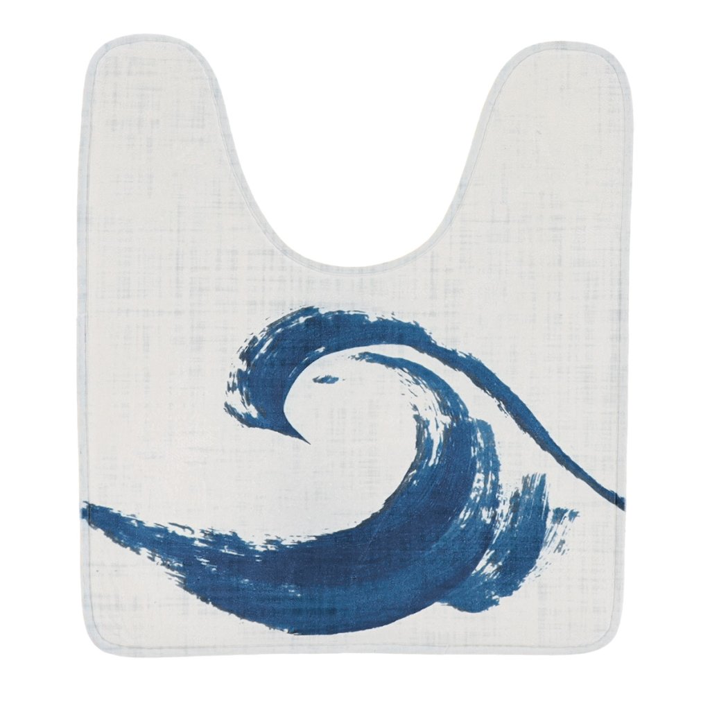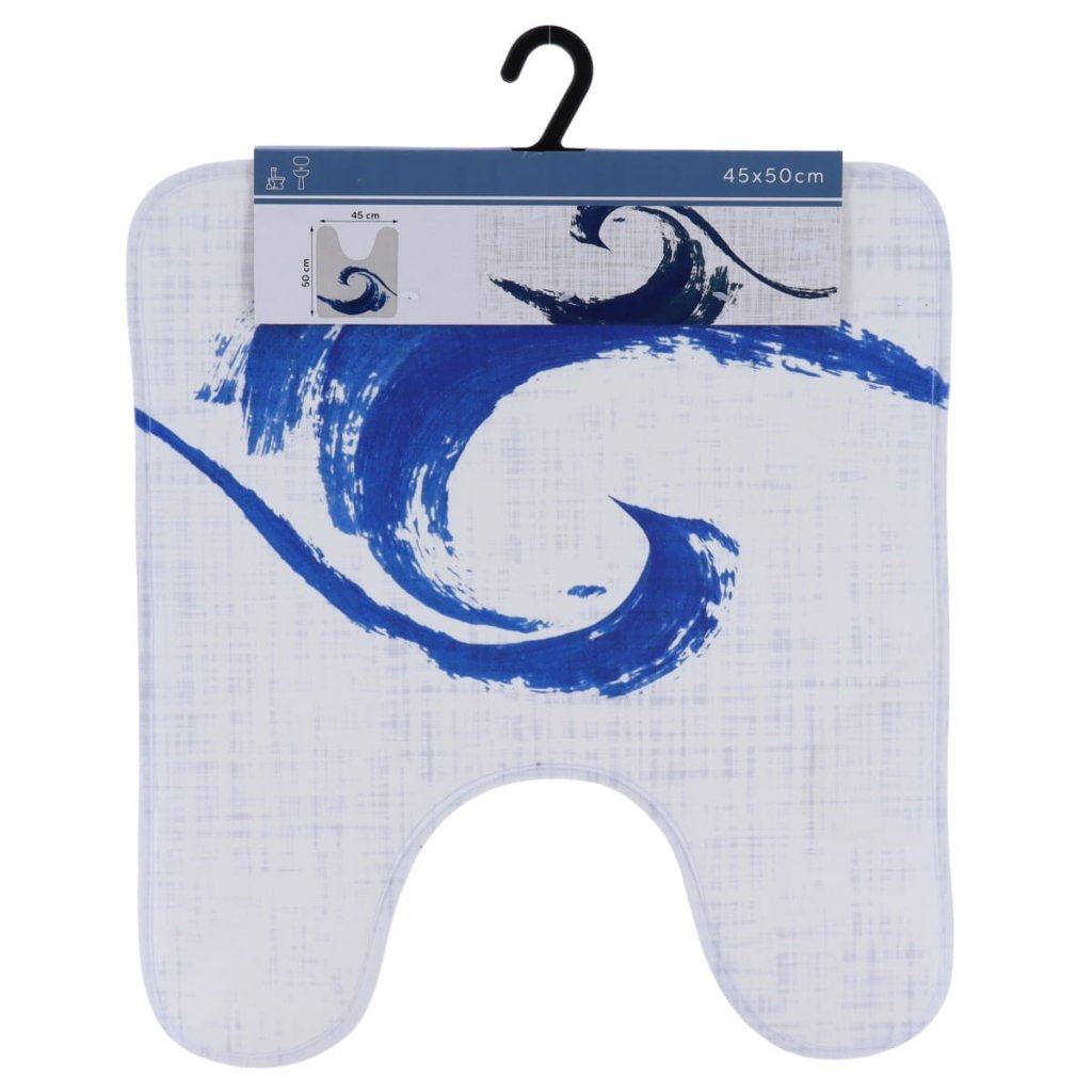 WC předložka Manureva o rozměrech 45 × 50 cm v kombinaci krémové a modré barvy je praktickým a zároveň dekorativním doplňkem každé koupelny. Motiv modrých vln evokuje námořní atmosféru a navozuje příjemný pocit klidu a svěžesti.