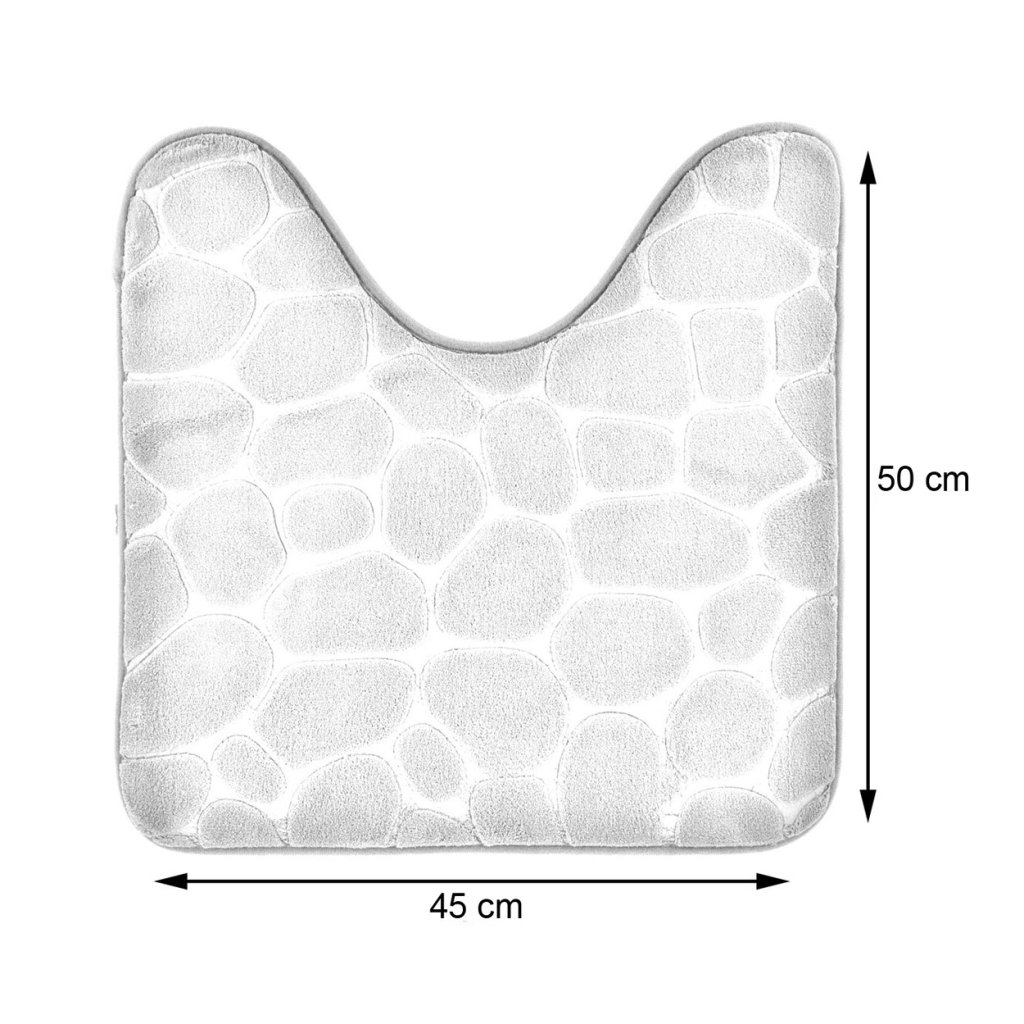 WC předložka Stones v elegantní šedé barvě o rozměrech 45 × 50 cm je navržena speciálně pro umístění kolem toalety, čímž zajišťuje vyšší komfort i estetickou funkci v koupelně či toaletě. Vyrobená z mikrovlákna s vysokou schopností absorpce , okamžitě nasává vlhkost a pomáhá udržovat podlahu suchou. Vnitřní paměťová pěna se přizpůsobí chodidlům, což oceníte zejména po dlouhém dni. Předložka má certifikát Oeko-Tex Standard 100 , který zaručuje, že neobsahuje škodlivé chemikálie a je bezpečná pro domácnost i životní prostředí.