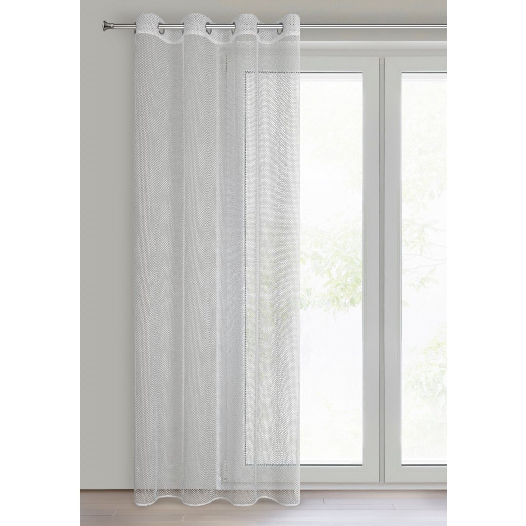 Bílá záclona se síťovanou strukturou, šířka: 140 cm, délka: 250 cm, barva: bílá, gramáž: 100 GSM, složení: 100% polyester.Doplňkové parametry