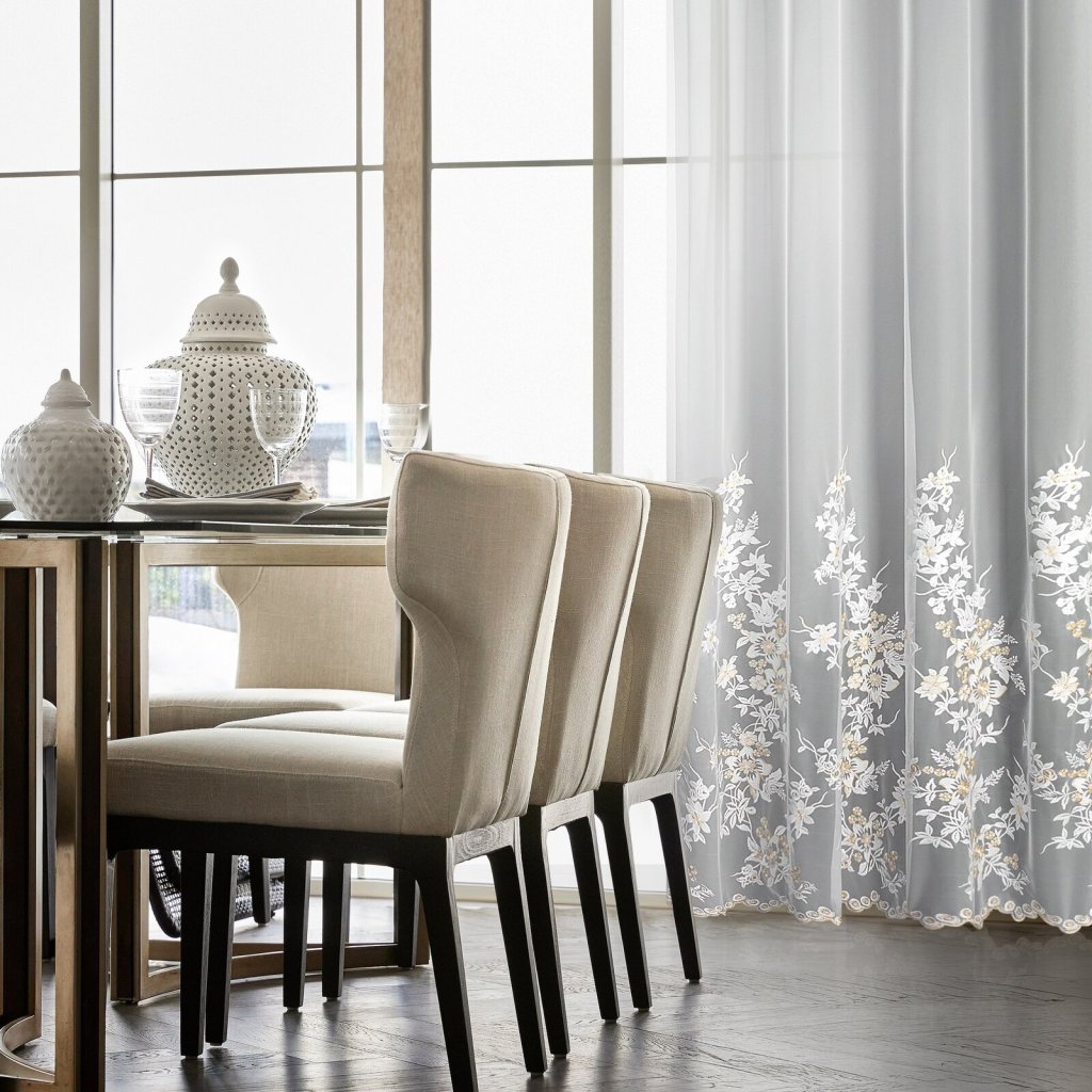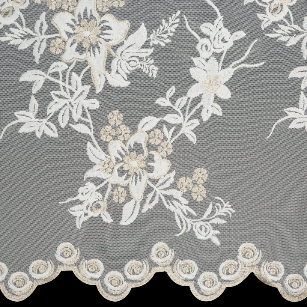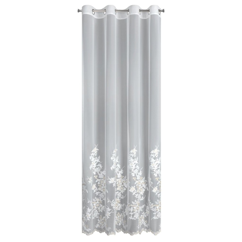Záclona ALIRA, vyrobená z jemné síťoviny, zaujme svojí decentní květinovou výšivkou, kterou zdobí jemně třpytivá nit šampaňské barvy. Její ozdobný lem je zakončen jemnou vyšívanou vlnkou, která celému aranžmá dodává nádech lehkosti a elegance. Šířka: 140 cm, délka: 250 cm, barva: krémová, hmotnost: 60 GSM, složení: 100% polyester.Doplňkové parametry