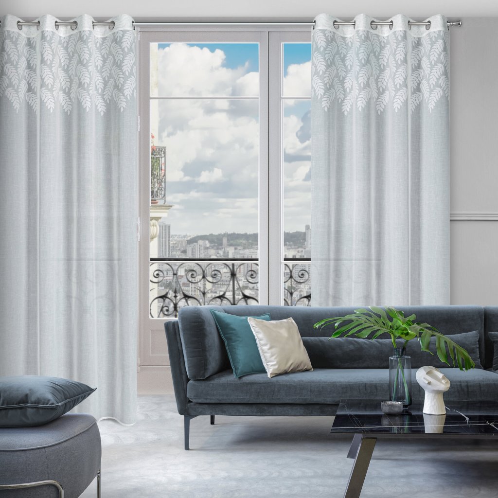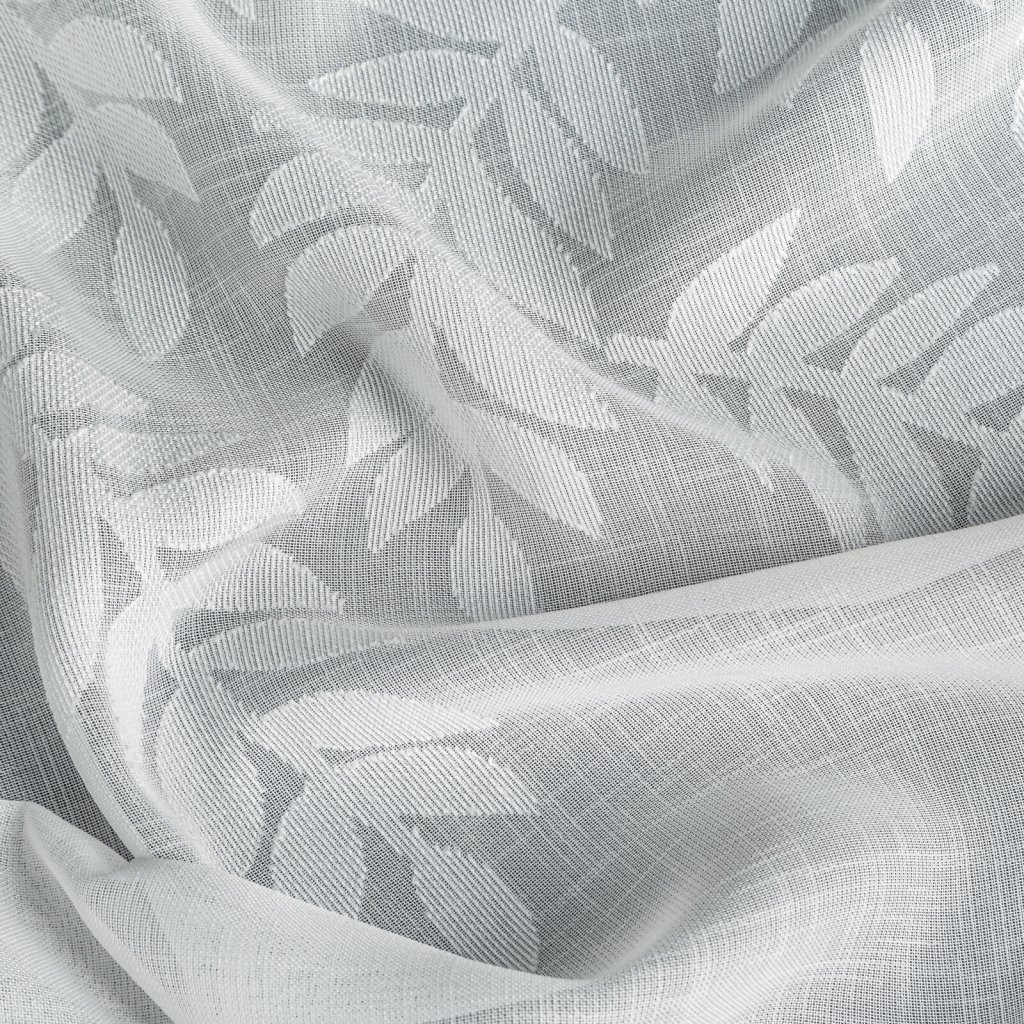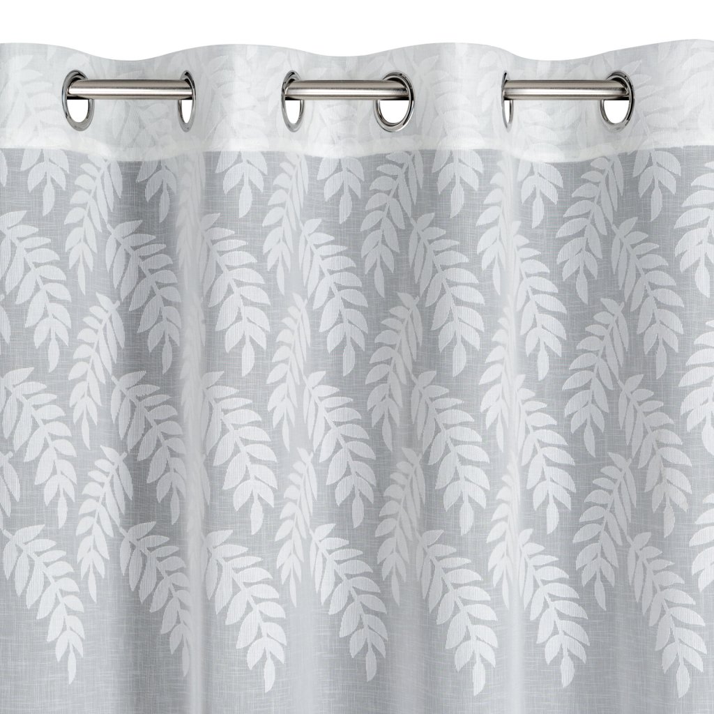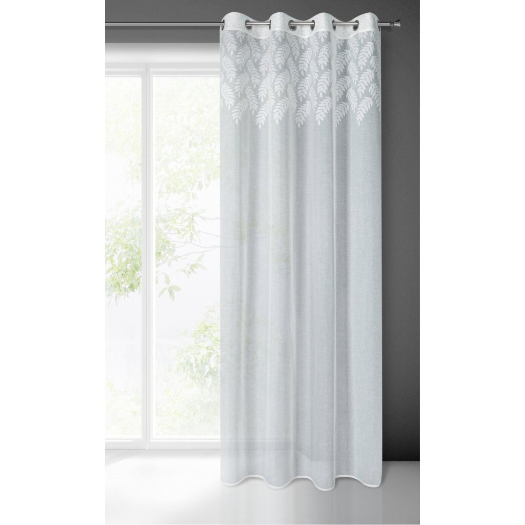 Hotová záclona zdobená květinovým vzorem, šířka: 140 cm, délka: 250 cm, barva: bílá, hmotnost: 85 GSM, složení: 100% polyester.Doplňkové parametry